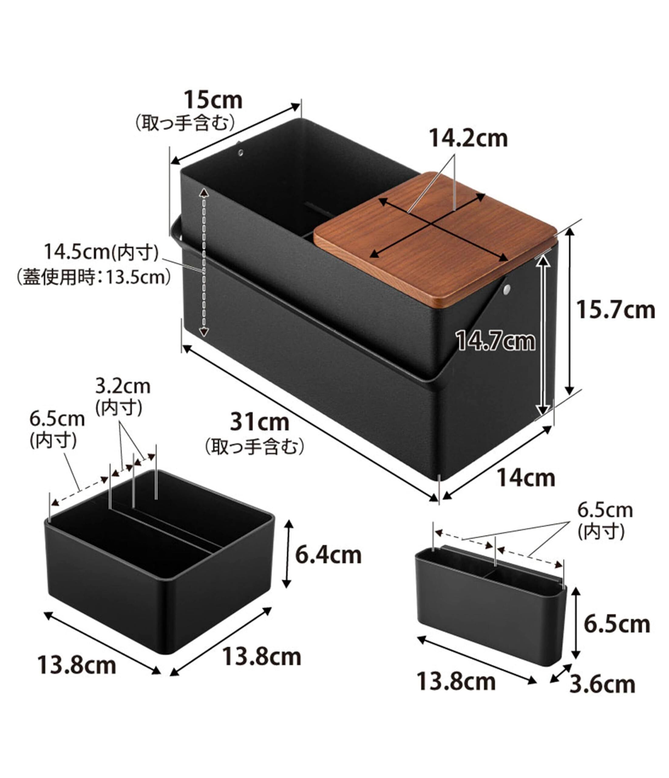 トレー(小)は本体側面のお好きな位置か、トレー(大)に引っ掛けて収納できます。
