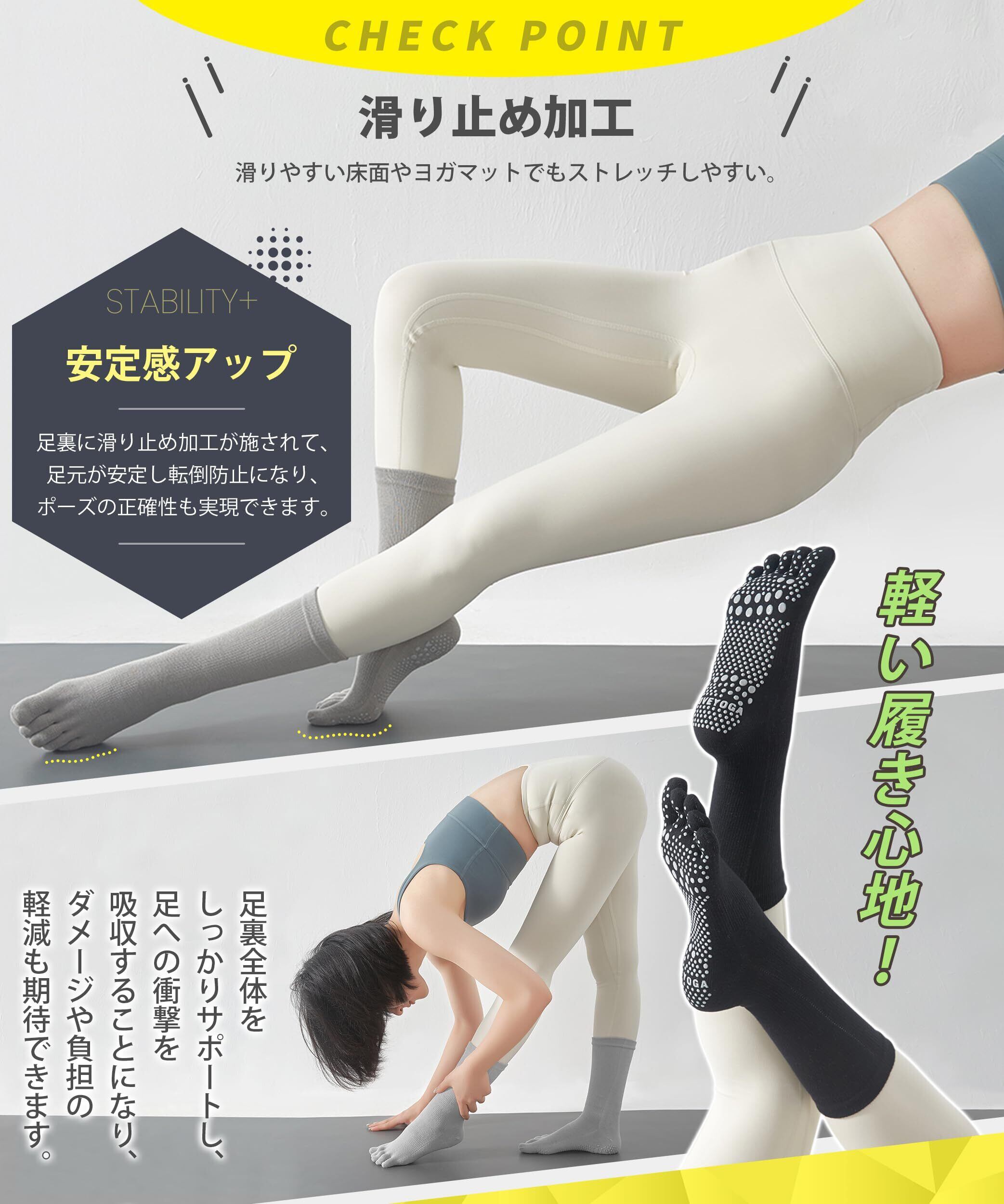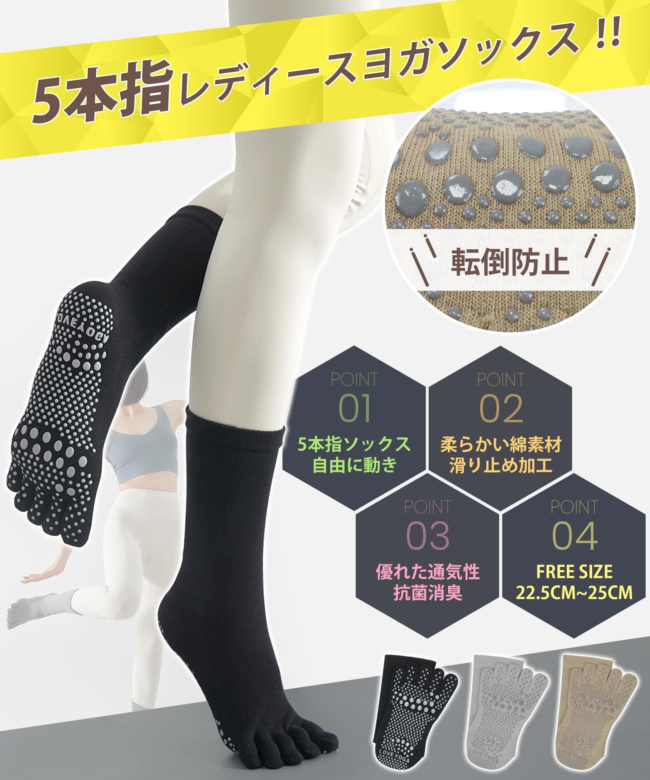 [YUMISS] ヨガソックス 滑り止め 5本指 ヨガソックス ピラティス靴下【通気性のよい綿素材・指先が自由に動き】ヨガ靴下 レディース 快適 抗菌消臭 蒸れにくい 冷房対策 22.5cm~25cm スポーツウェア ヨガ ピラティス トレーニング スポーツ