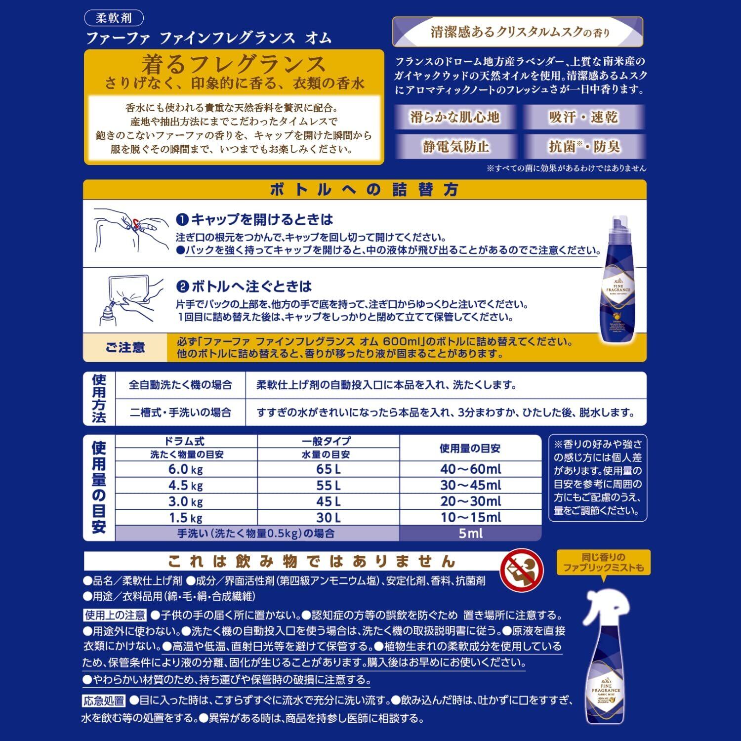 ●ご注意…必ず「ファーファファインフレグランス ボーテ 600ml」のボトルに詰め替えてください。他のボトルに詰め替えると、香りが移ったり液が固まることがあります。