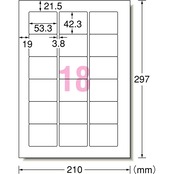 A4判 18面 四辺余白付 角丸/シートサイズ:A4判 (210mm×297mm)/ラベルサイズ:53.3mm×42.3mm(3列×6段)