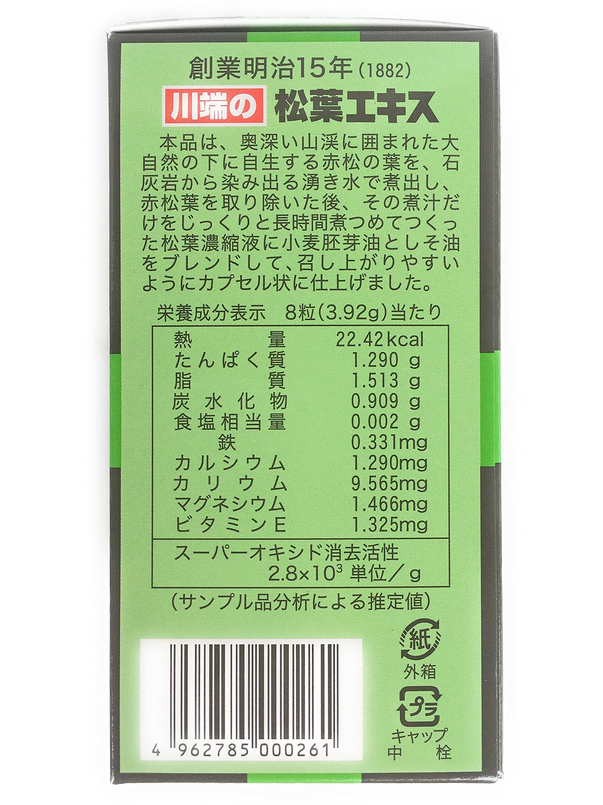 製造方法:伝統製法で作った松葉エキスをソフトカプセルで飲みやすく仕上げました。