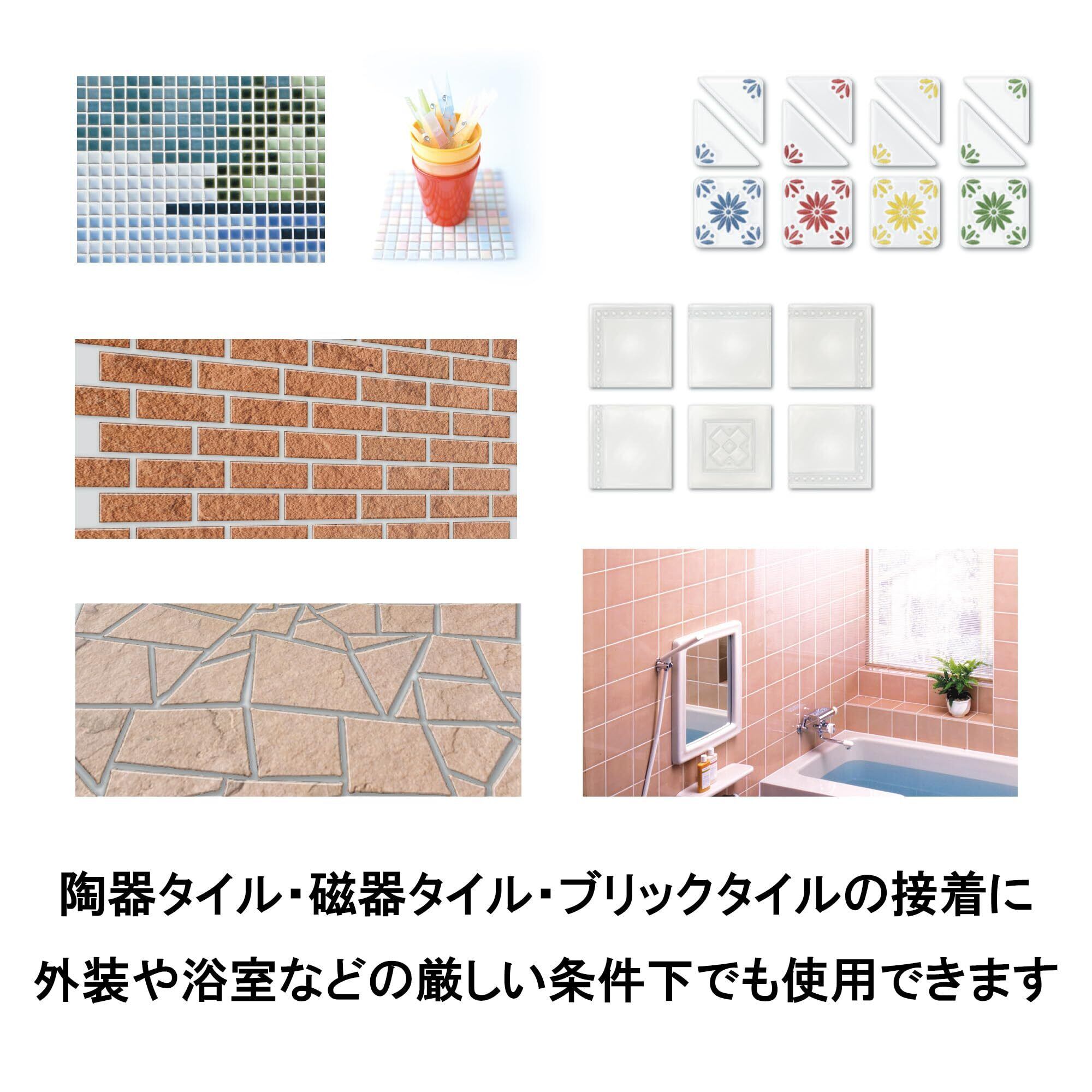 外装・浴室など厳しい条件下でも使用できるタイル用強力弾性接着剤