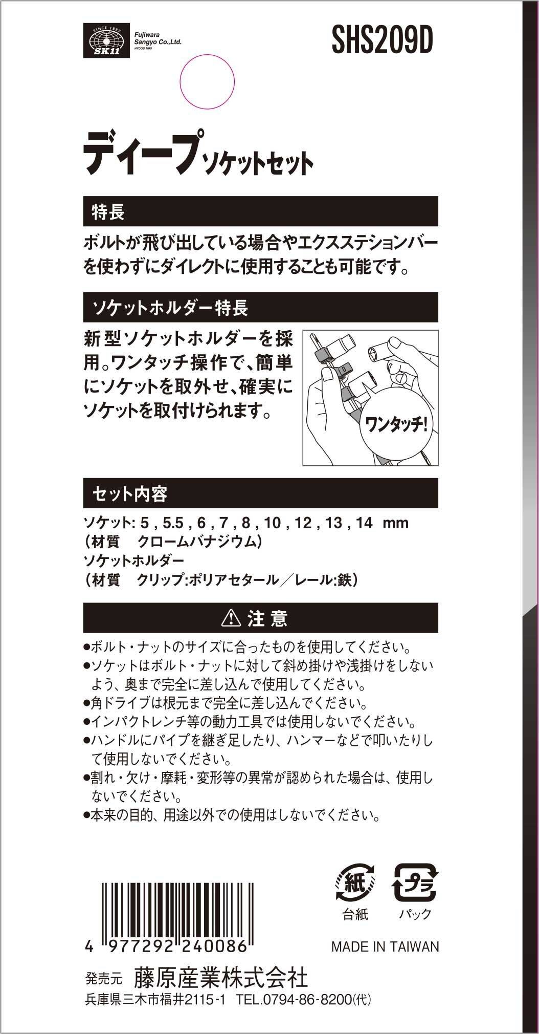 SK11(エスケー11) ディープ ソケットセット 5~14mm 差込角 6.35mm (1/4インチ) SHS209D