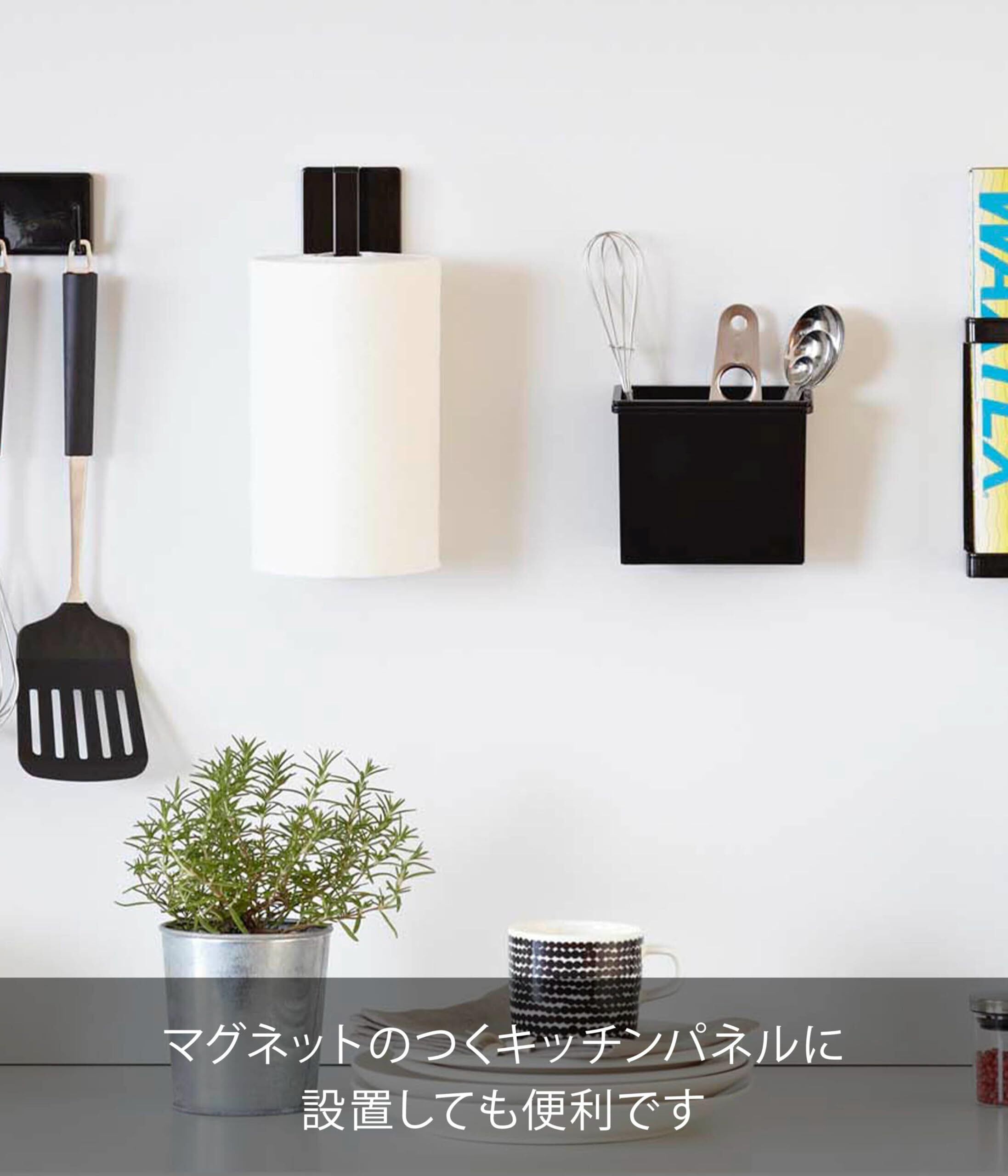 山崎実業(Yamazaki) マグネット キッチンペーパーホルダー ブラック 約W6×D5.2×H24.5cm タワー tower 縦横どちら向きでも設置できる キッチンペーパー タオルハンガー 7128