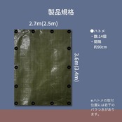 ●ハトメ数(個):14●ハトメピッチ(cm):90●幅×長さ(m):2.7×3.6●質量(kg):1.5