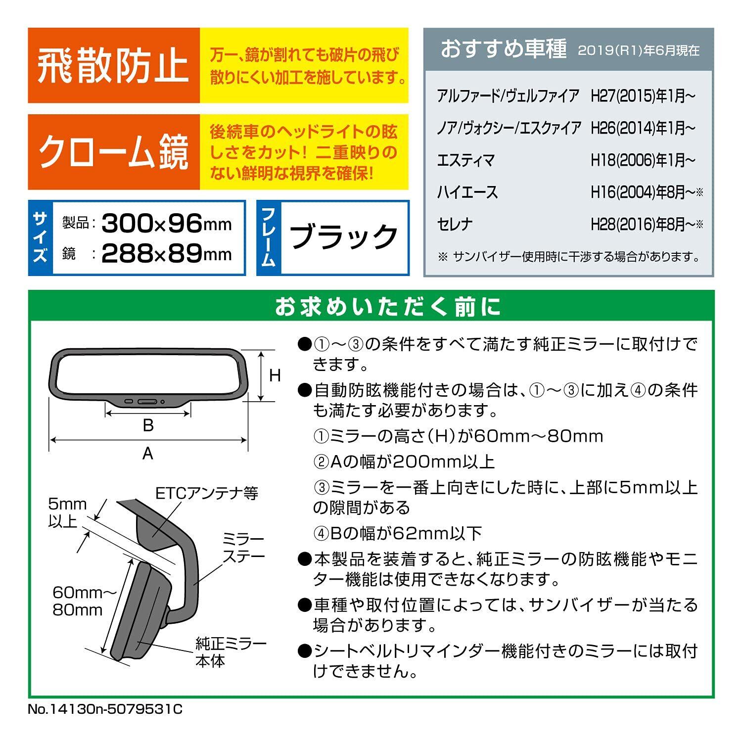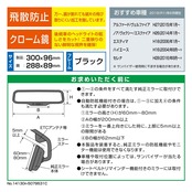 ●ミラーが割れるおそれがあるので、取付時や取付後にミラー面を強く押さないこと●エアバック装着車に取付の際は、車の取扱説明書をご覧ください●本製品は緩曲面鏡のため、純正ミラーとは視界の距離感が異なります