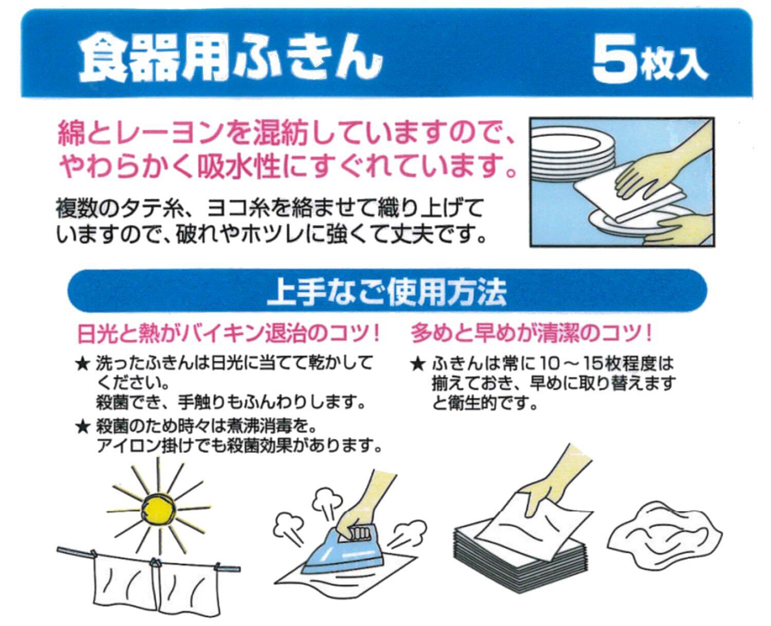 ボンスター 食器用ふきん 5枚入 柔らかな手触り サッと吸水 約35×50cm F-858