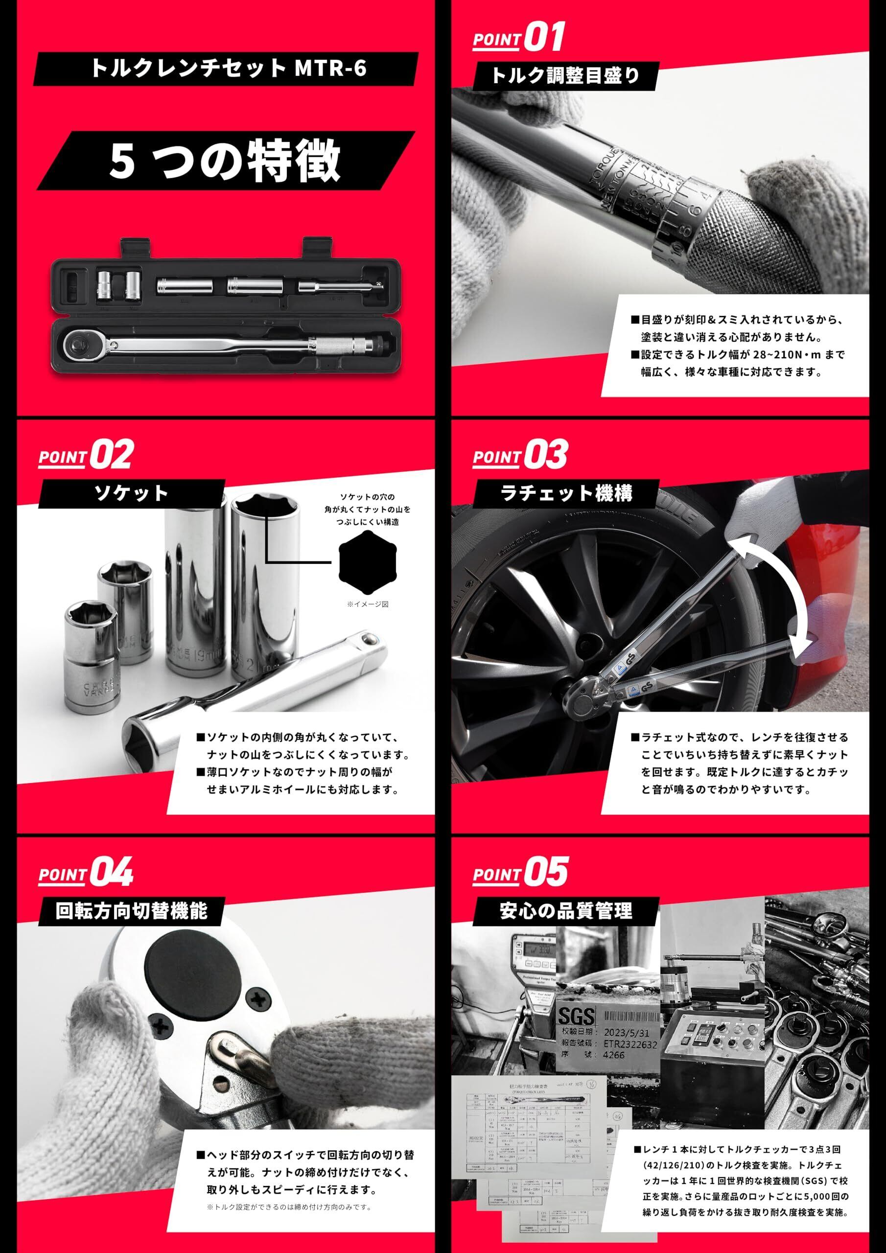 角利(KAKURI) トルクレンチセット 収納ケース付 トルク範囲28-210N.m ソケット14/17/19/21mm エクステンションバー125mm 差込角12.7mm ツール 工具 タイヤ交換 車 バイク 自転車 ラチェット式 マルチクラフト MTR-6