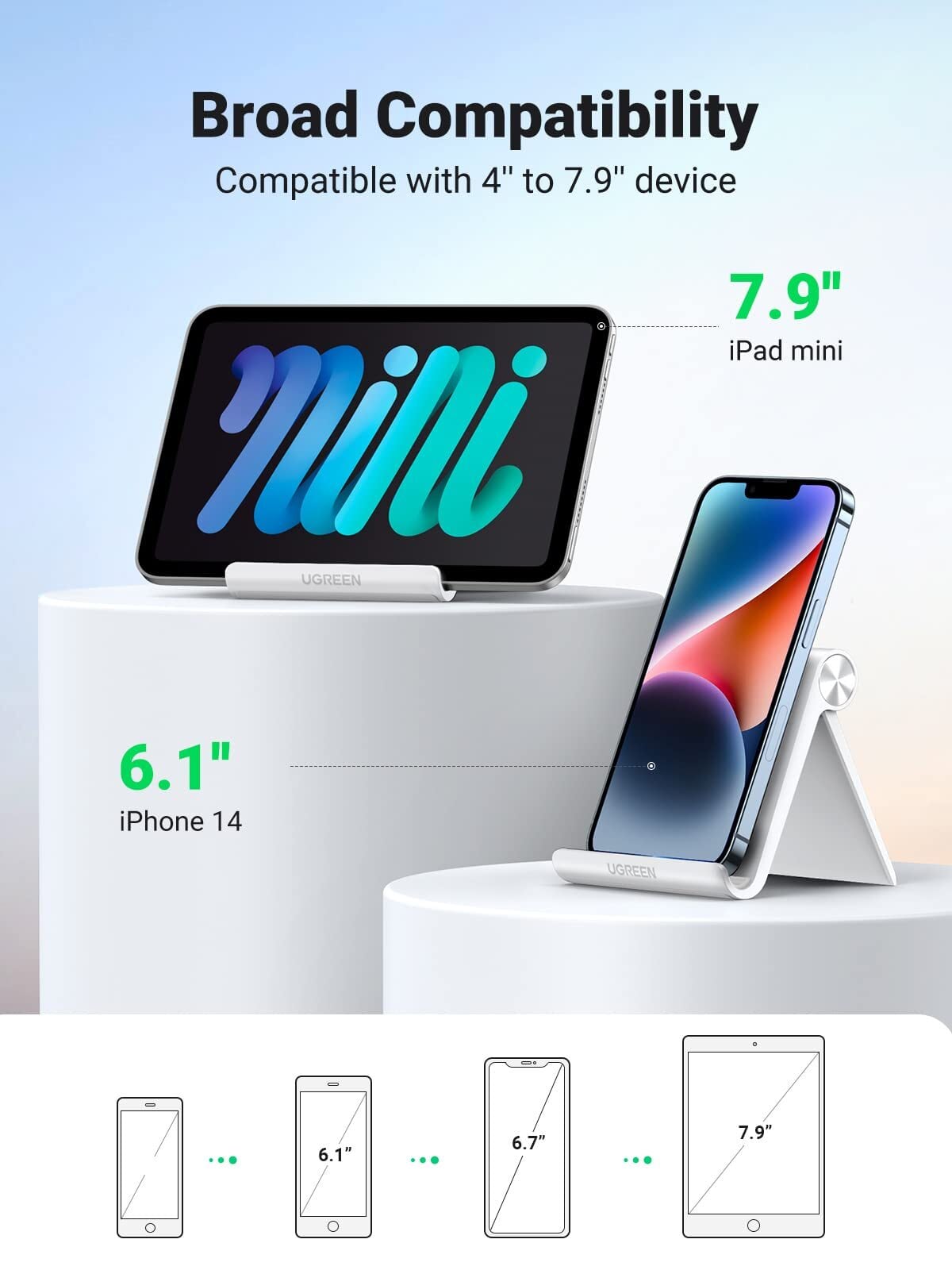 UGREEN スマホスタンド 携帯スタンド 卓上 Mサイズ 折りたたみ式 iPhone 14/13/12 Pro Max 角度調整可能 4-7.9インチのiPhone/Androidスマホ タブレットに適用 スマホ立て スマホ置き 白