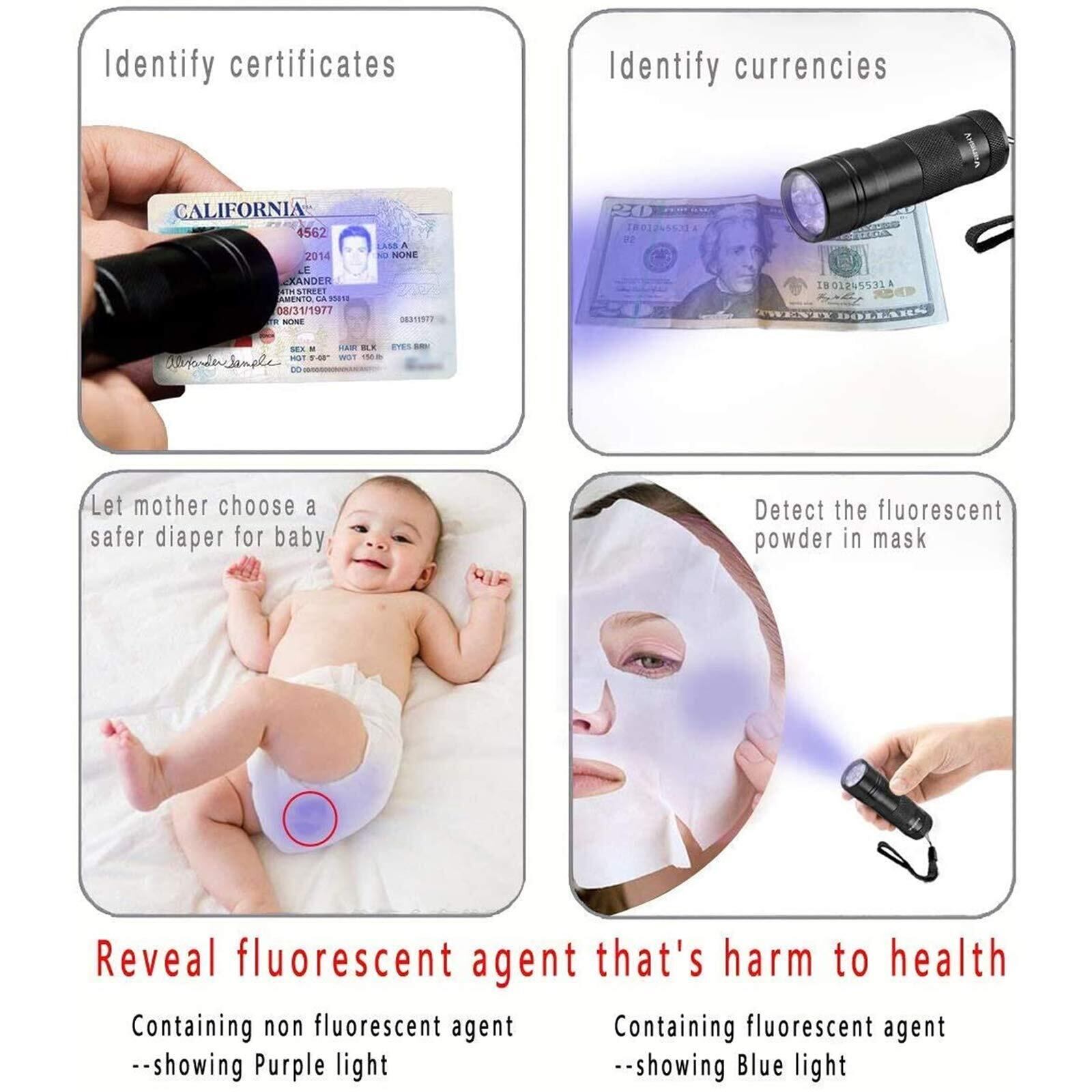 【色々なシーンで活躍】ホテルの部屋、トイレ、そして台所のコンロ回りの検査、偽造紙幣とパスポートを確認する、夜間の釣り用の照明、アニサキスを見つけます、サソリなどの探索、化粧品や日用品の蛍光検出、ベビー用品や蛍光剤残留物の検査など実用性は十分です