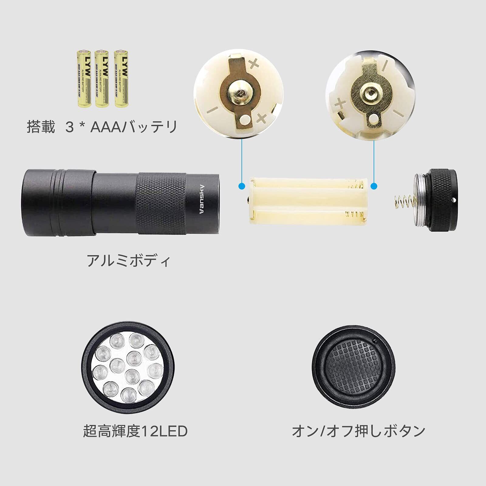 Vansky 12LED 紫外線 ブラックライト UVライト 紫外線 ライト レジン用硬化ライト 目には見えない汚れに対策に (ブラック)