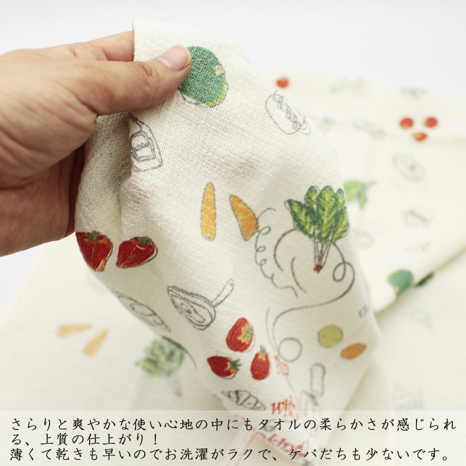 ●薄くて軽い手ぬぐいの使い勝手の良さと、タオルがもつ吸水性を併せ持った万能タオル