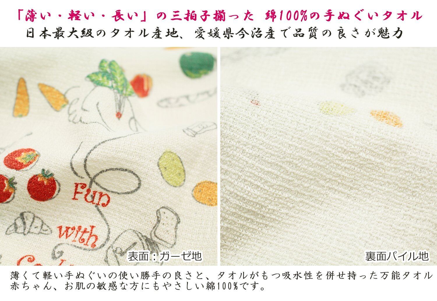 ●「薄い・軽い・長い」の三拍子揃った日本製、綿100%の手ぬぐいタオル