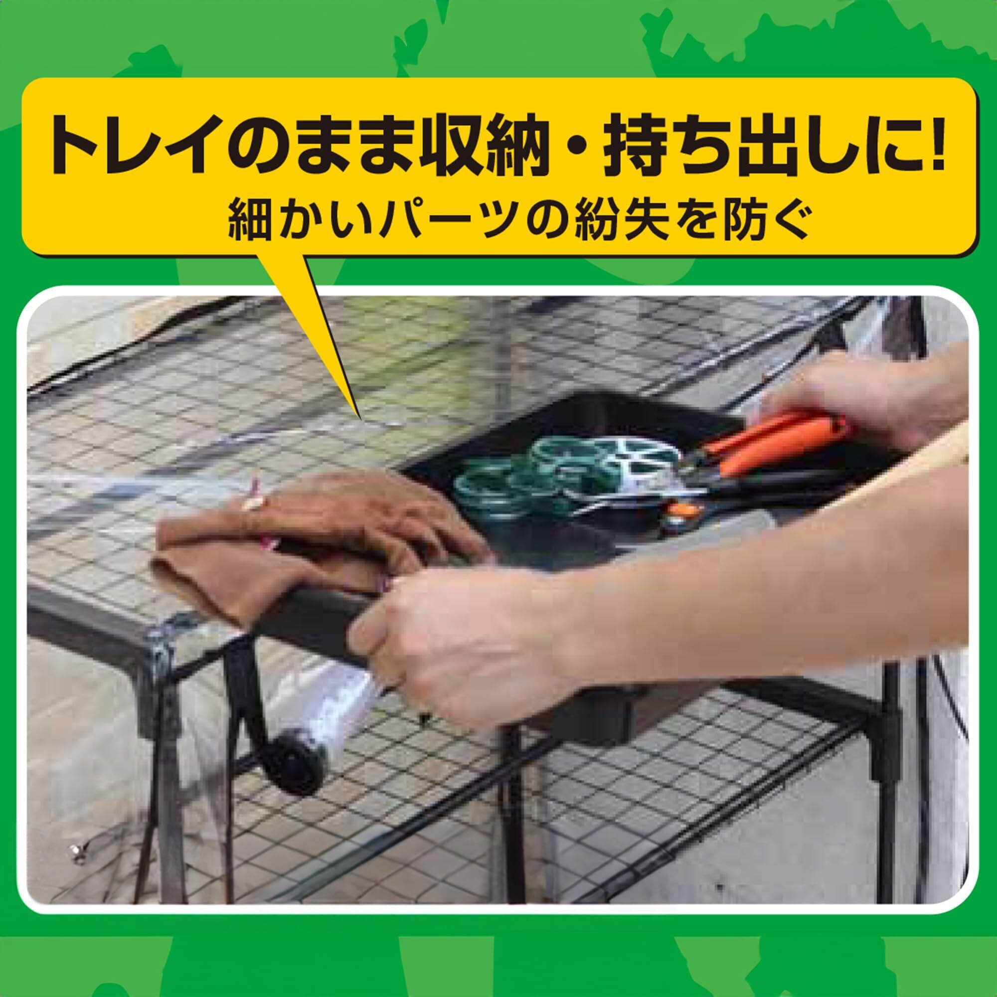 トレイのまま収納・持ち出しに。細かいパーツの紛失を防ぎます。