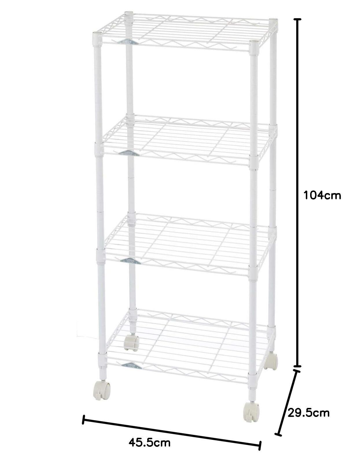 ドウシシャ ルミナス カラーラック 白 ホワイト 4段 幅45 スリム オシャレでかわいい スチールラック 棚 収納 全体耐荷重120kg キャスター付き ポール径19mm 幅45.5×奥行29.5×高さ104 キッチン ランドリー 押入れ LCR45-4WH