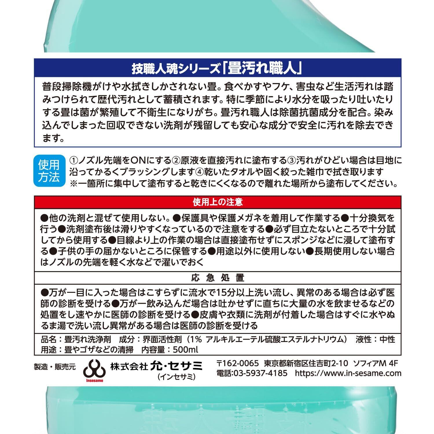 【畳汚れ職人 500mL】畳専用 防カビ 抗菌成分配合! 水拭きだけで取れない井草の間の汚れを浮かせて落とす!