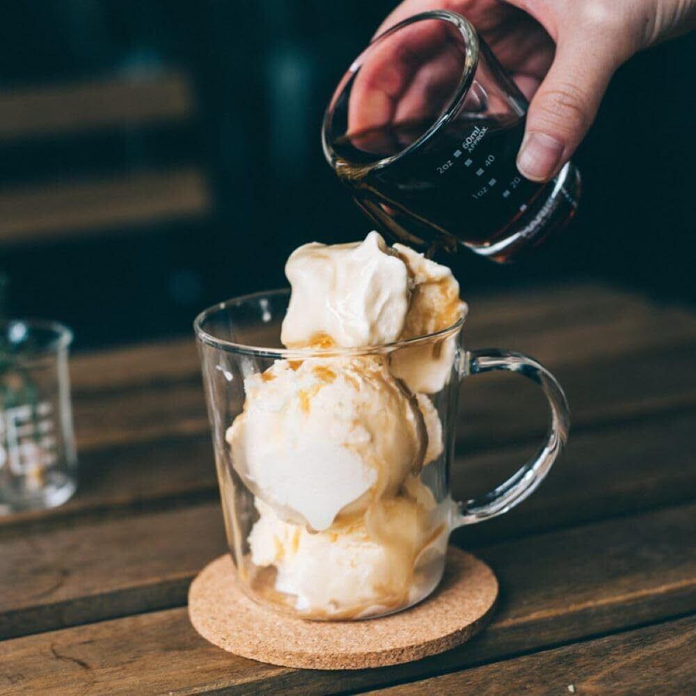 【耐熱ガラス製】 耐熱ガラス製なので、ホットでもアイスでもシーンを選ばず、お使いいただける万能マグカップです。