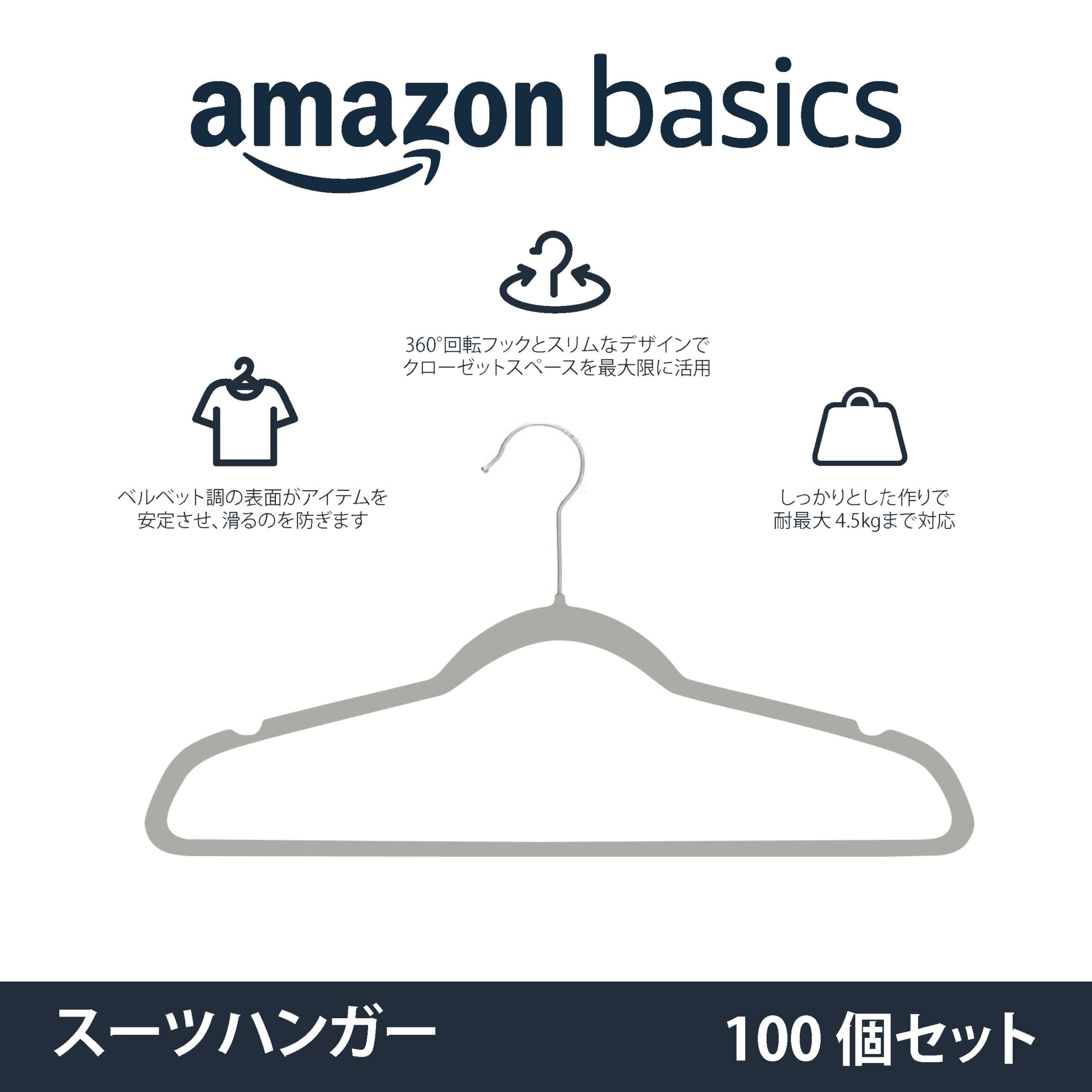 ベーシック ハンガー 100本組 滑らない かたくずれ防止 ベルベット製 グレー