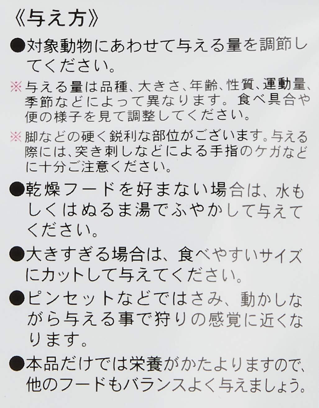 本品は、ペットフードです。目的以外の使用はおやめください。お子様が与えるときには安全確保のために大人の方が付き添ってください。季節や原料事情により色合いやにおいなどが異なる場合がございますが品質には問題ありません。本品は自然の農作物を使用しておりますので虫がつくことがあります。直射日光、高温多湿をさけ涼しい場所に保管してください。開封後はできるだけ早くご使用ください。