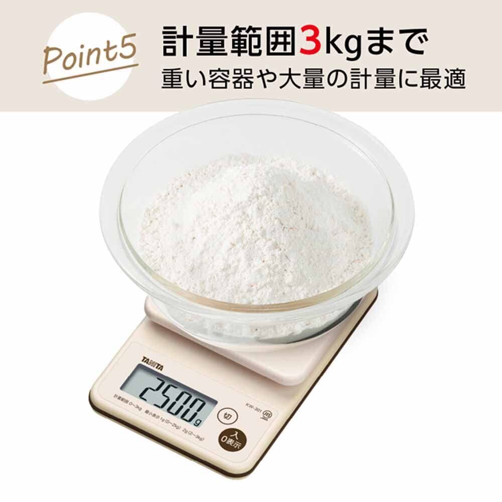 タニタ(Tanita) クッキングスケール はかり キッチン 料理 3kg 1g単位 防水 洗える 丸洗い 最短1秒ではかれる アイボリー KW-301-IV