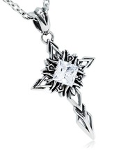 【存在感のあるネックレス】大粒の正方形キュービックジルコニアが中央で輝くデザインの人気のロザリオネックレスです。ステンレス部分は精巧な作りのメンズネックレスです。