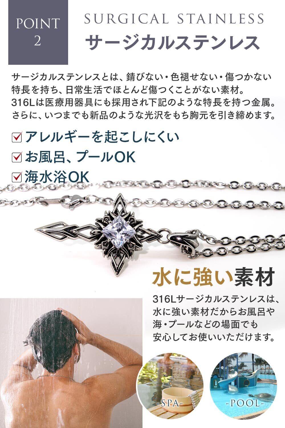 【アレルギーを起こしにくい材質】敏感肌の方にも優しいニッケルフリーを採用しています。ペンダントトップはタングステン、チェーンはサージカルステンレスを使用し、耐久性と軽量さを両立しました。