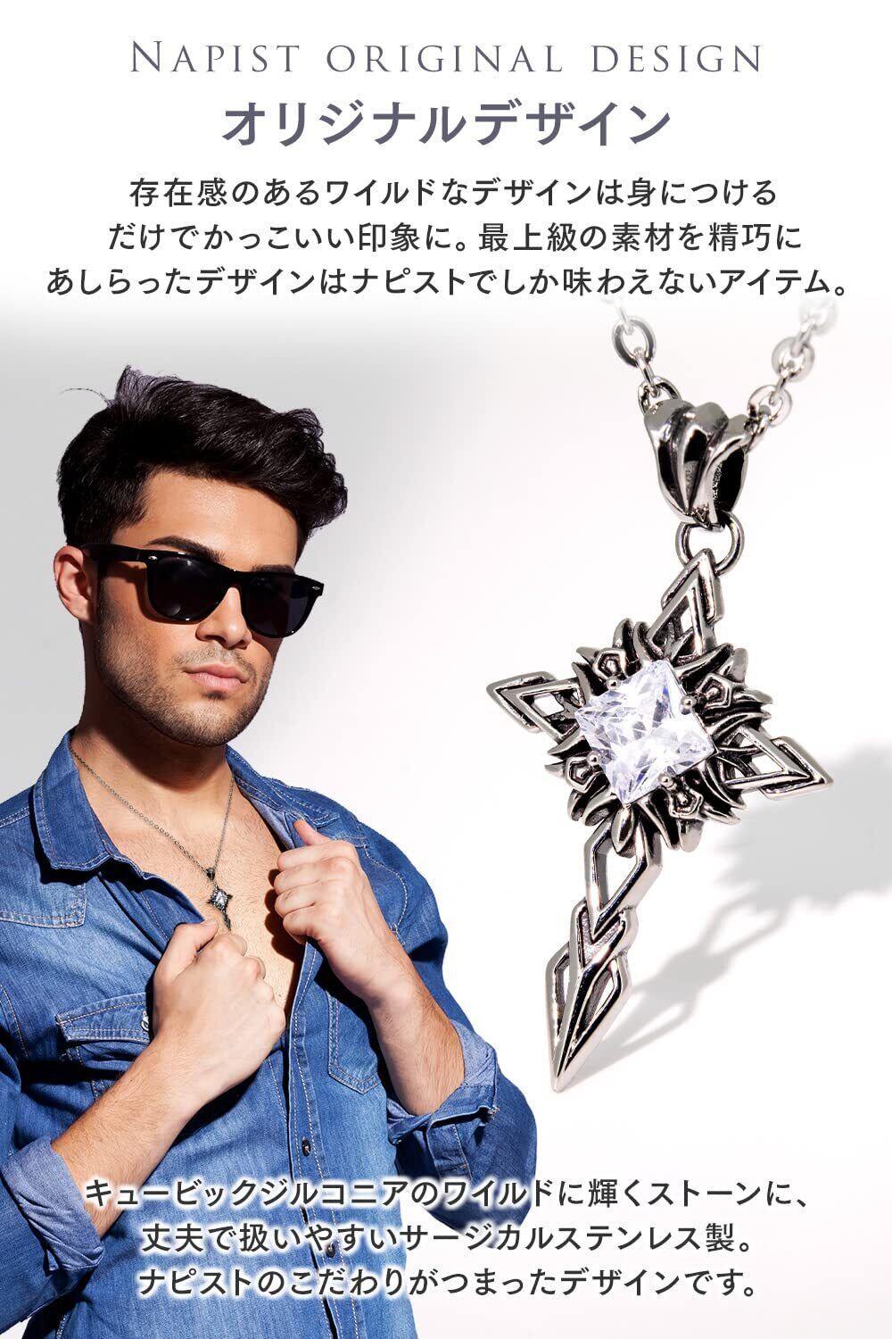 Napist ネックレス メンズ 十字架 キュービックジルコニア 316L サージカルステンレス [ 金属アレルギー対応 ] シンプル ロザリオ クロス NPN089 シルバー