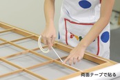 ●障子枠が湿っていたり、「はがし剤」や「洗剤」が残っていると接着しないことがありますので、水ぶきをした後、枠を充分に乾燥させてから貼ってください。