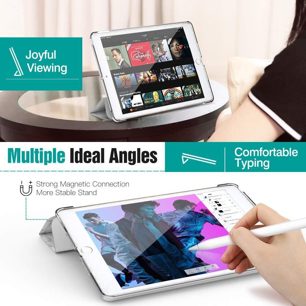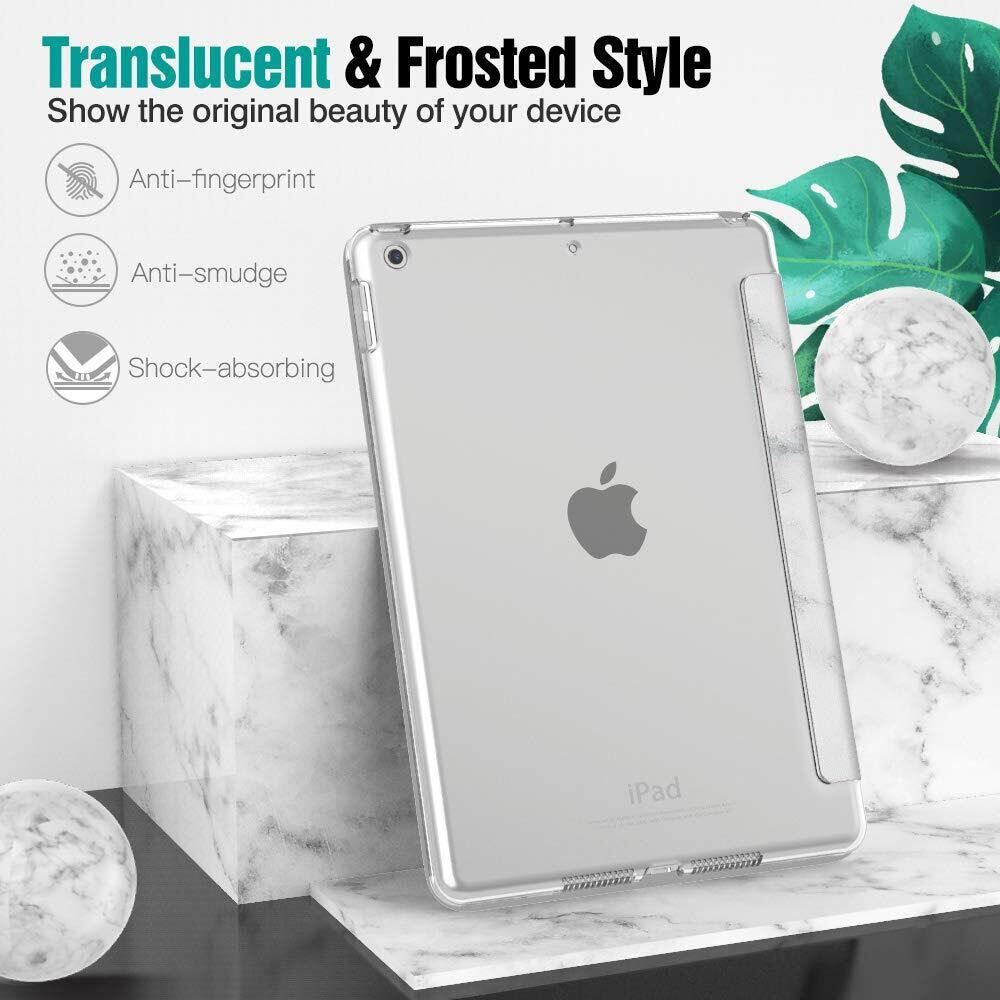 Dadanism 第9/8/7世代 アップル iPad 10.2インチ 2021/2020/2019モデル 半透明 カバー スタンドケース オートスリープ機能 軽量 薄型 PU+PC マイクロファイバー裏地 耐久性 全面保護 White Marble