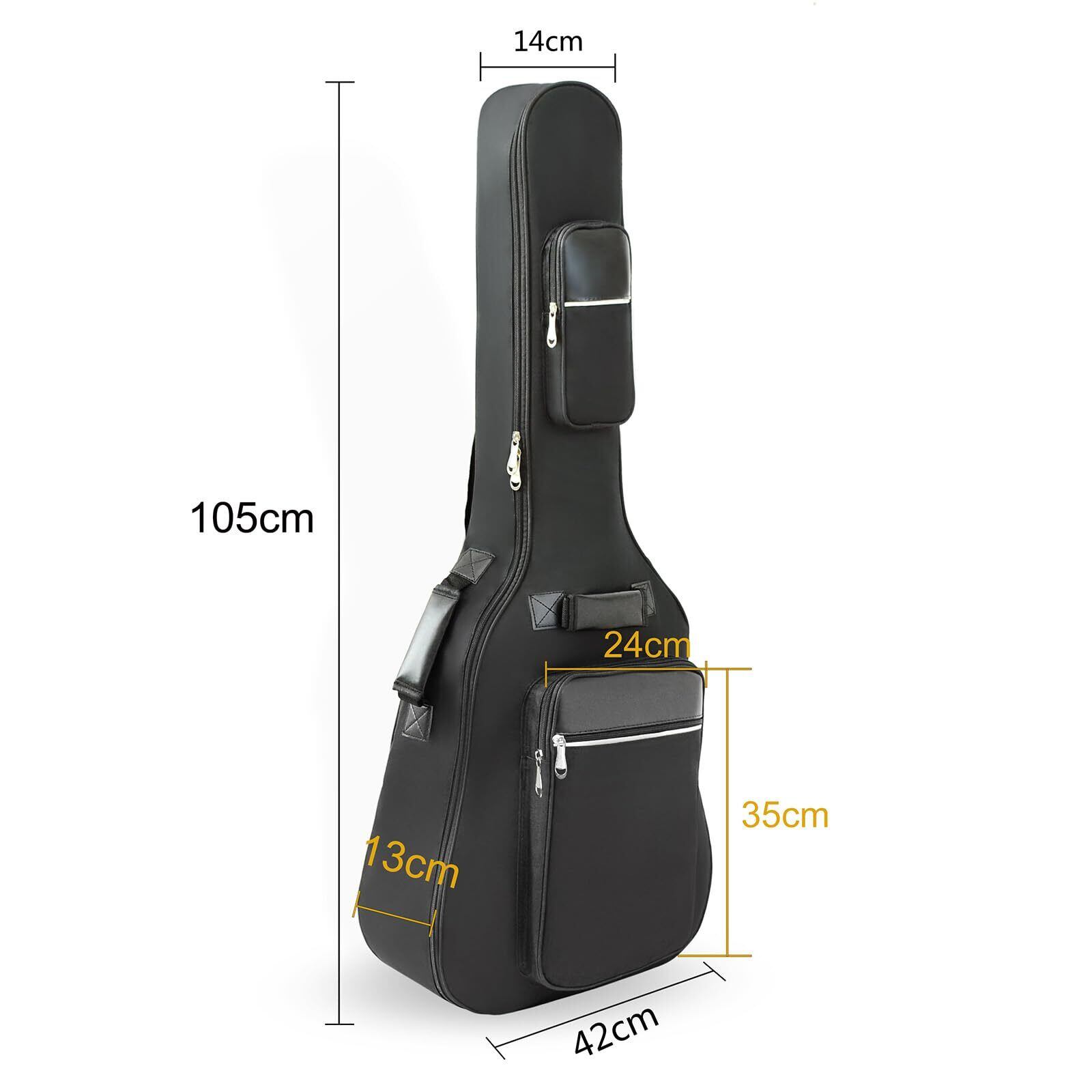 アコースティック ギター ギグバッグ 40-41インチ用 ギターケース 8mm スポンジ ギターソフトケース 楽器バッグ 軽量 厚い肩 大容量ポケット 肩掛け 手提げ 600D防水 オックスフォード布 ブラック