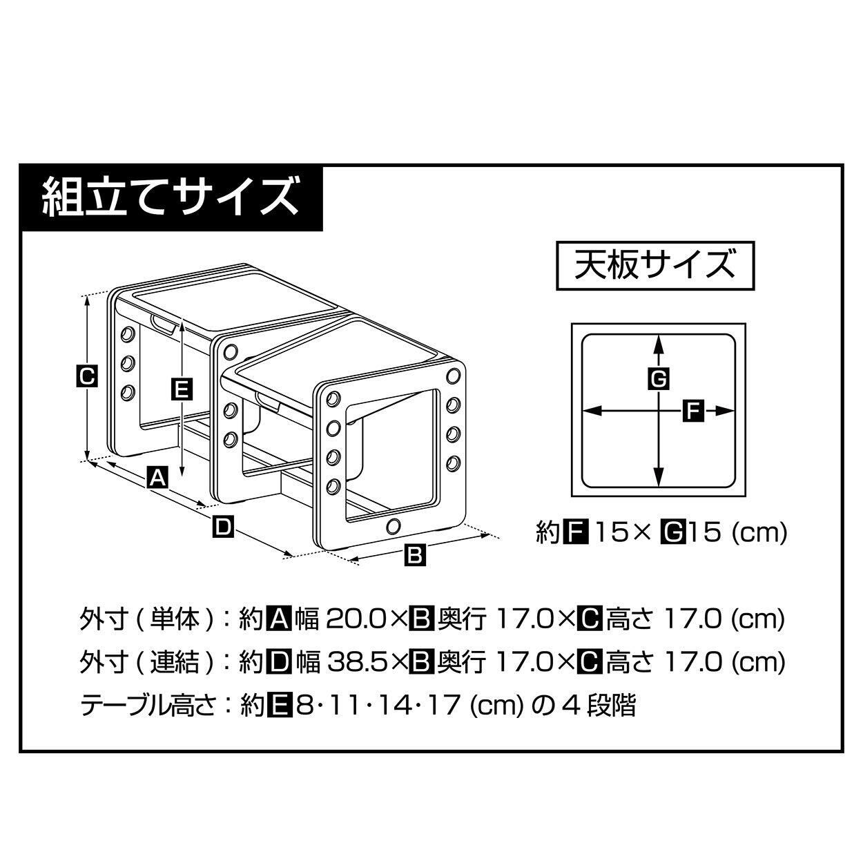 〈組立て方法〉・本品は分けて2台として使用する方法とつなげて1台として使用する方法があります。目的に合わせて組立ててください。・テーブルの高さや角度等は愛犬が食べる様子を確認しながら調節してください。※組立て方によっては使用しないパーツがあります。使用しないパーツは大切に保管してください。※ピンと連結ピンは真っ直ぐ差し込んでください。斜めに差し込むと破損の原因になります。※ピンと連結ピンはパチンと音がするまで差し込んでください。※床面の材質等によっては、スベリ止めが色移りしたり、キズ・跡等が残る場合がありますので、シート等を敷いて設置することをおすすめします。※左右方向のグラつきがありますが、使用上問題ありません。【分けて使う場合】1脚(左右共通)と補強棒をピンで固定してください。2ピンでテーブルを脚に取付けます。3テーブルに天板とスベリ止めマットをのせてください。※天板をテーブルの突起にはめてください。〈テーブルを斜めにする場合〉・手前のピンの取付け位置を1段下げることで角度をつけられます。※取付け位置は2段以上さげないでください。※最下段は角度がつけられません。【つなげて使う場合】1脚(左右共通)と補強棒をピンと連結ピンで固定してください。2テーブルをピンと連結ピンを使って脚に取付けます。3さらにテーブル・補強棒・脚をピンで取り付けます。4テーブルに天板とスベリ止めマットをのせてください。※天板をテーブルの突起にはめてください。〈分解方法(ピンの抜き方)〉1脚を指で押し出すようにして抜いてください。※必ずスベリ止めマット・天板を外した後に行ってください。※無理に力を加えて抜かないでください。破損の原因となります。※真っ直ぐ引き抜いてください。破損の原因となります。