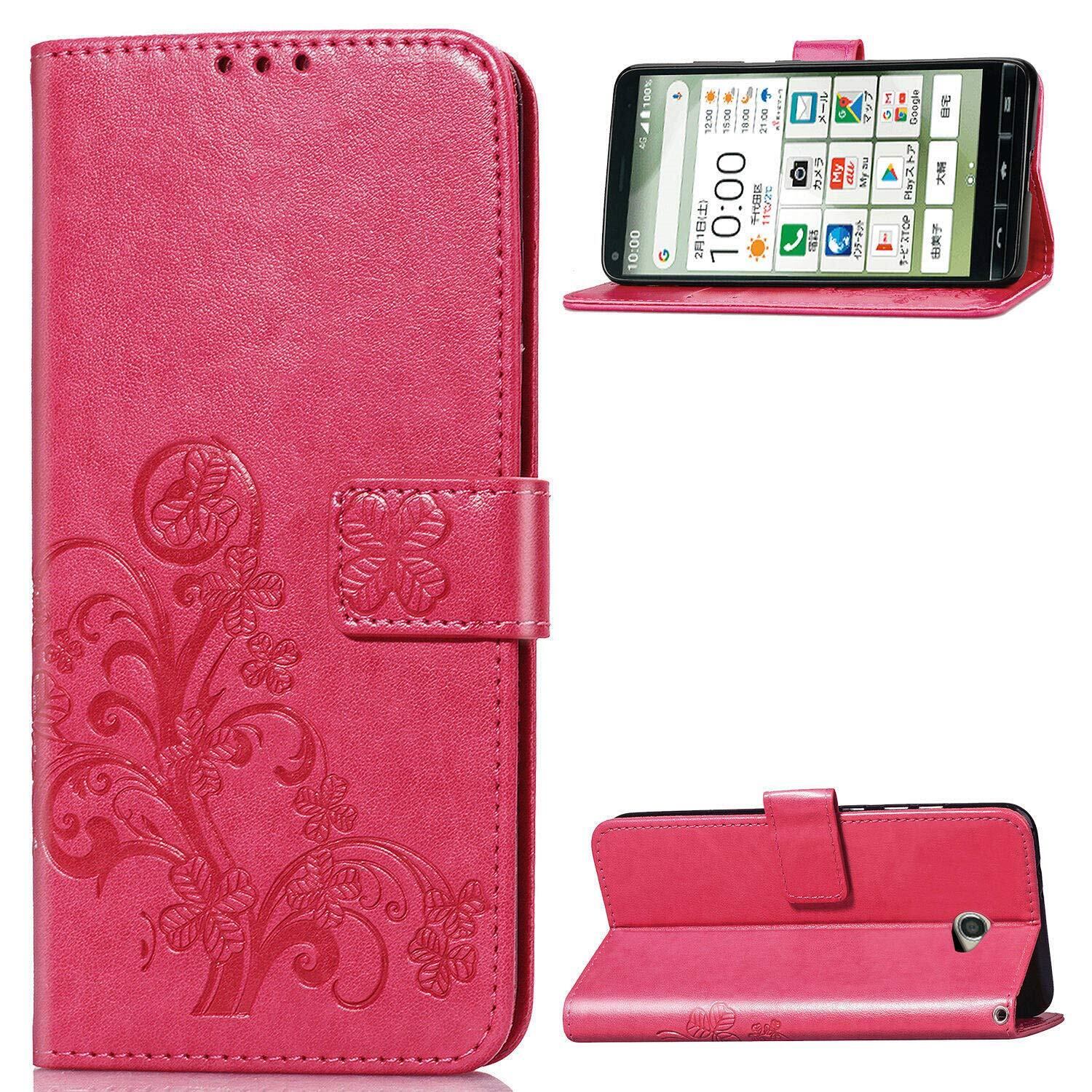 対応京セラ BASIO4 KYV47 BASIO 4 ベーシオ4 かんたんスマホ2 A001KC ケース 手帳型 ノートブック型携帯電話保護カバー多機能携帯電話ホルスター財布携帯電話ホルダーバンプパターンテクスチャ耐久性摩擦耐性携帯電話ケース男性と女性に適した多色オプション (四つ葉のクローバー赤)