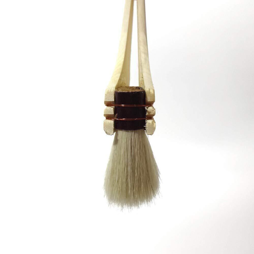 こちらの刷毛は柔らかい白山羊毛、しかも先毛を使用しています。 品質の良い刷毛の毛先は、カットされていない為に先に向かって少しずつ自然に細くなっています。 この毛先が塗料を塗った時に刷毛目がたたないように塗るための重要な条件となります。 (刷毛の材料として使用する原毛の中には、長い毛をカットして使用するものがあります。 その場合、毛先はカットされているために、ブツ切りになっています。カットされた部分に角が出るために刷毛目が出やすくなります。) このニス刷毛白毛別製はコストを少しでも抑える為に、薄口に設計されています。 使用可能塗料は油性です。水性塗料には向いていません。 時代と逆行するかもしれませんが、最近は刷毛等を洗浄するシンナーの価格が高くなっており、使い捨てにされる職人さんが多いようです。 丸一日使用できれば、この刷毛は使い捨て用には最適かもしれません。一度使い勝手をお試し下さいませ。