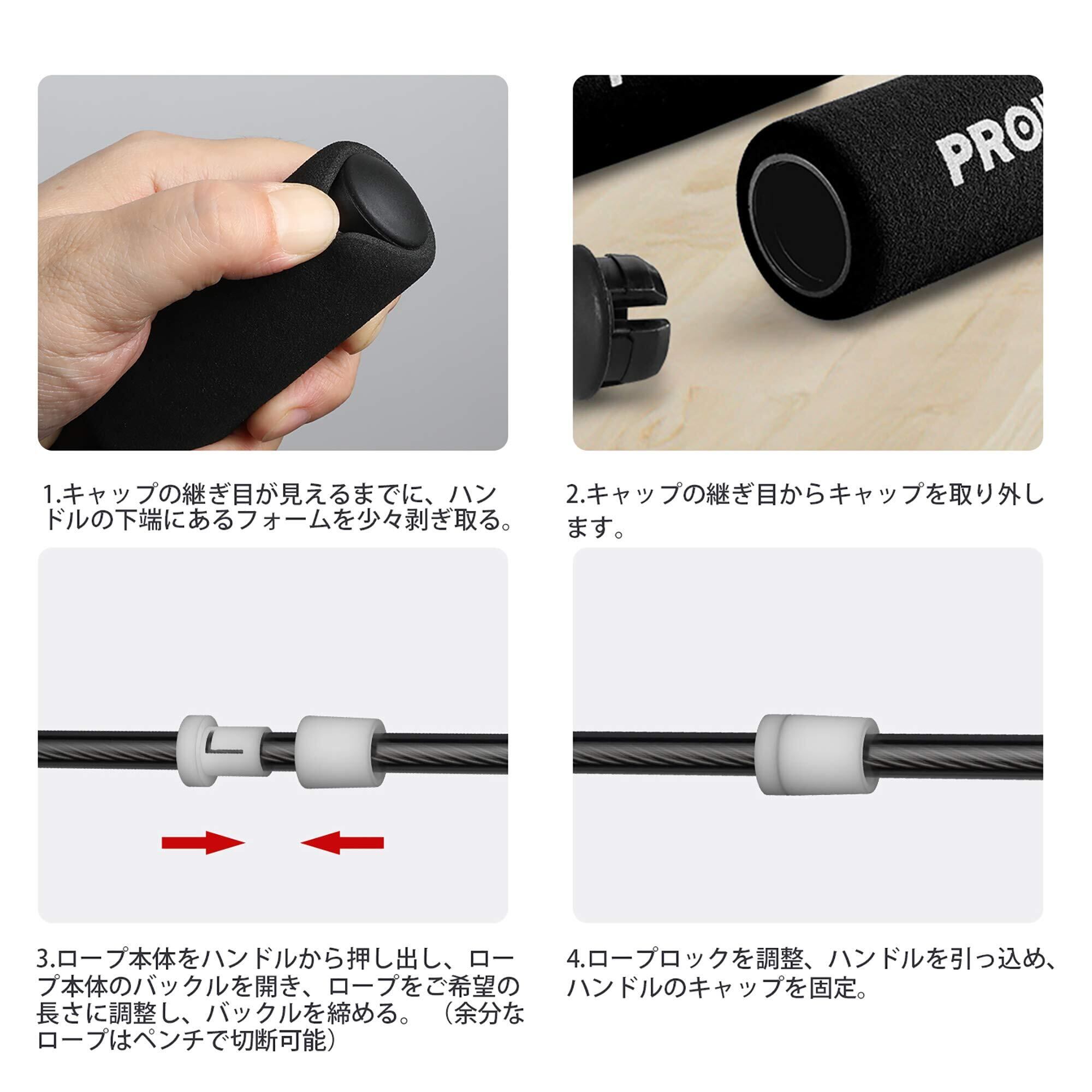 PROIRON 縄跳び なわとび 大人用 ダイエットトレーニング用 ねじれ防止 スチールロープ ベアリング付き 長さ調節可 4色