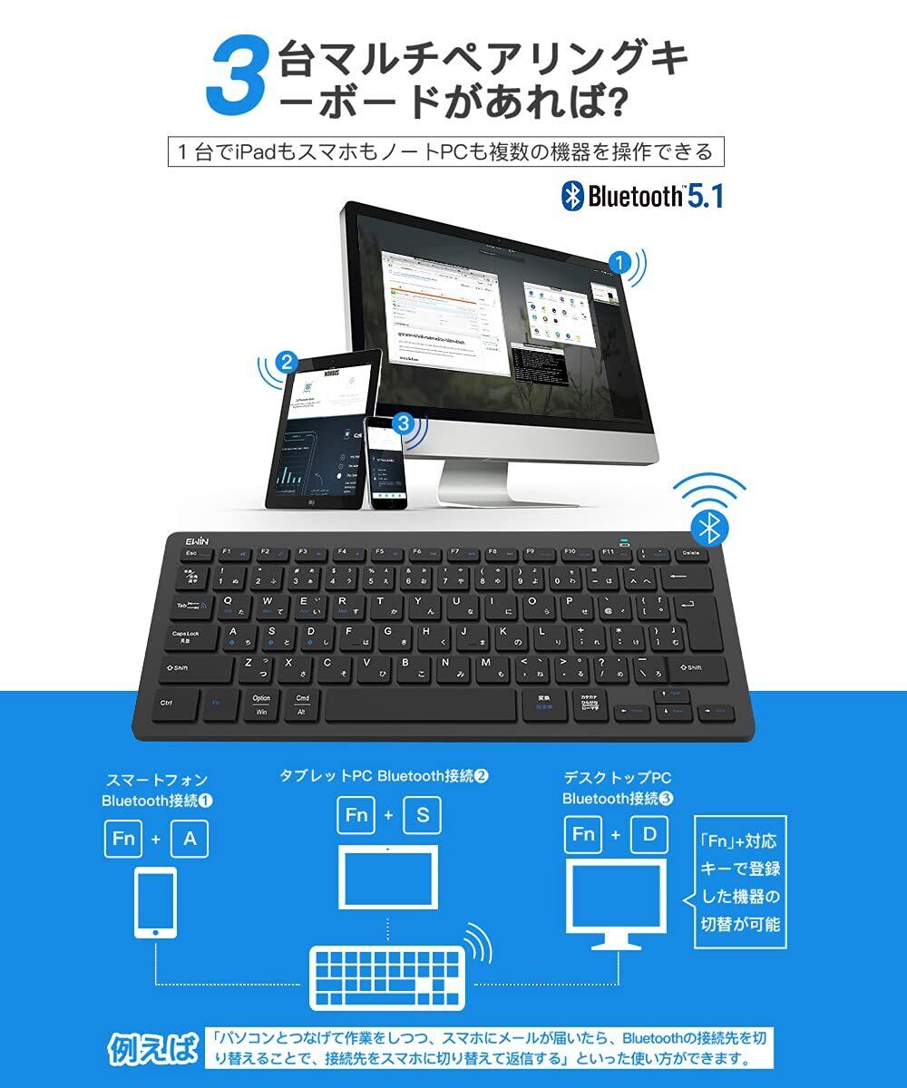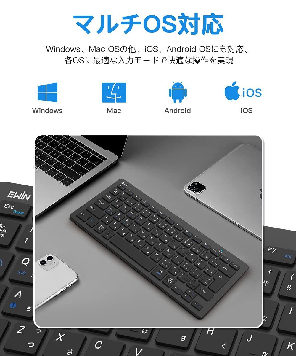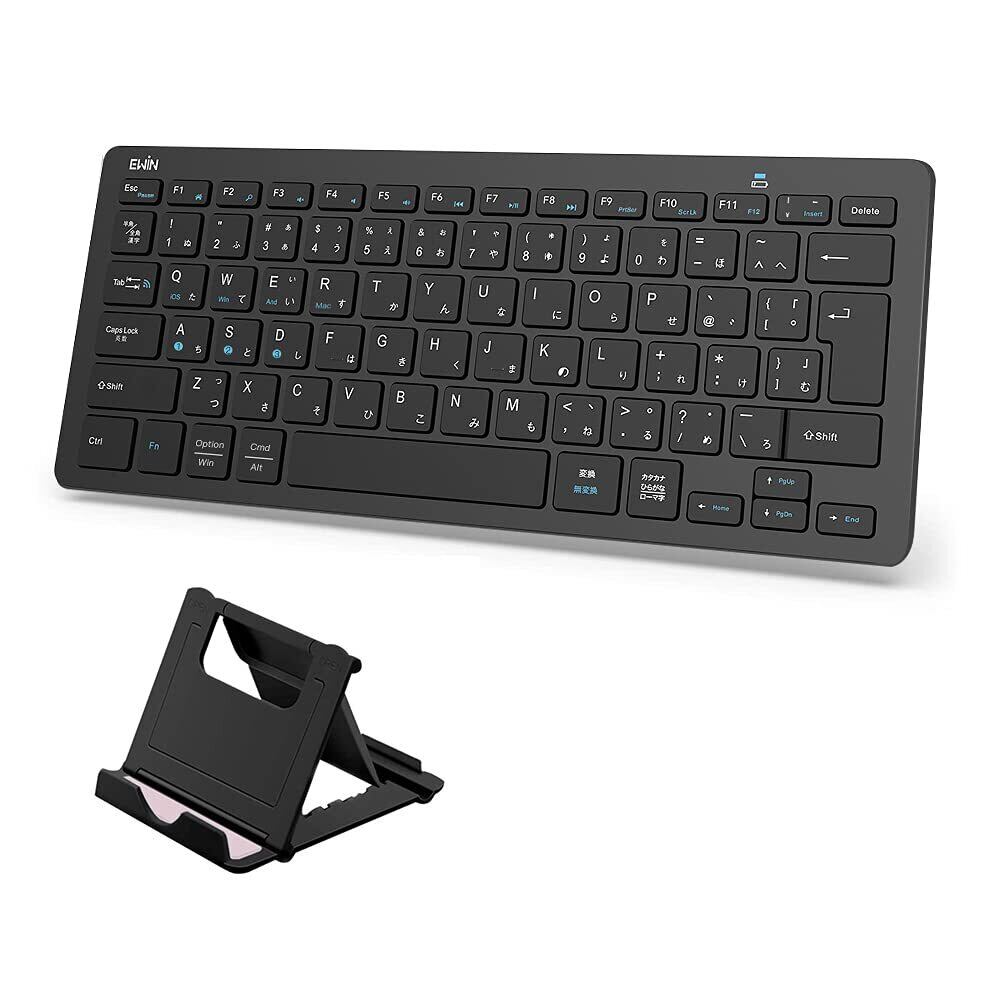 Ewin 「スタンド付き」 日本語配列 bluetooth キーボード マルチペアリング アイ パッド タブレット用キーボード ipad ダブレット スマホ ノートPC パソコン mac android ios Windows対応 (ブラック)