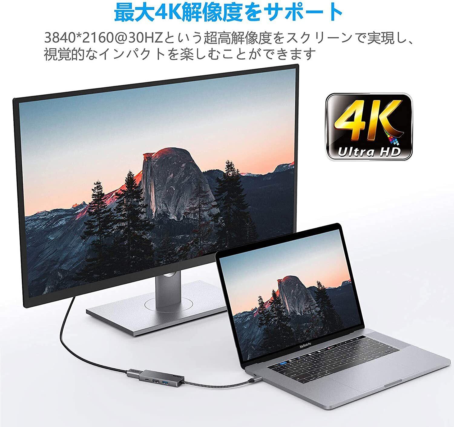 【4K解像度出力】最大4K UHD(3840x2160 @ 30Hz)の解像度でパソコン/タブレット/スマホをディスプレイ(テレビ、モニター、プロジェクター)に接続し、ミラーリングまたは拡張する用に使用することができ、生活や仕事で高品質な画像を楽しみます。