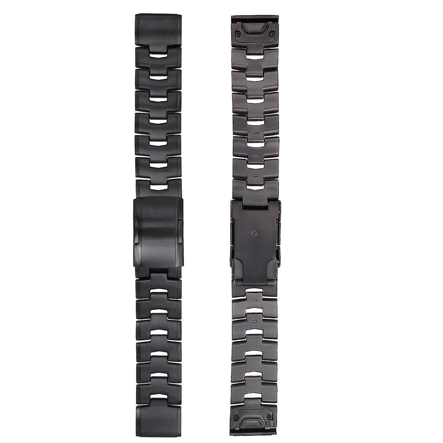 Ahayo QuickFit 22mm 交換ベルト用の Garmin Approach S70 47mm/ epix Pro 47mm/ Fenix 8 47mm / Fenix 7/ Fenix 6 / Fenix 5, 超軽量チタンスチールストラップ ステンレス鋼の留め金 に適合するガーミン Instinct 2/ Forerunner 955 / Approach S62用(フルブラック)