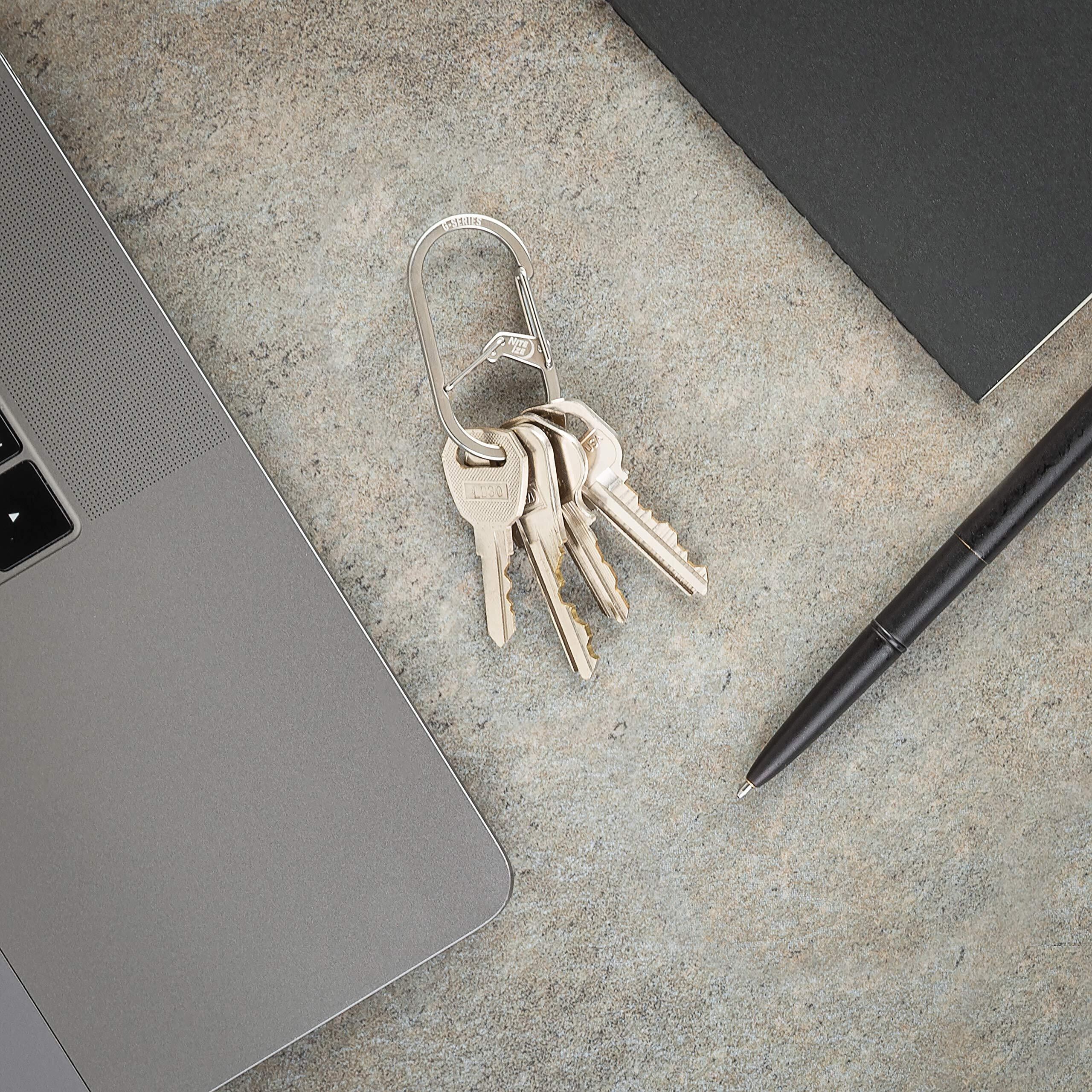 ステンレス製ボディで、鍵やキーアクセサリーをクールにまとめられます。