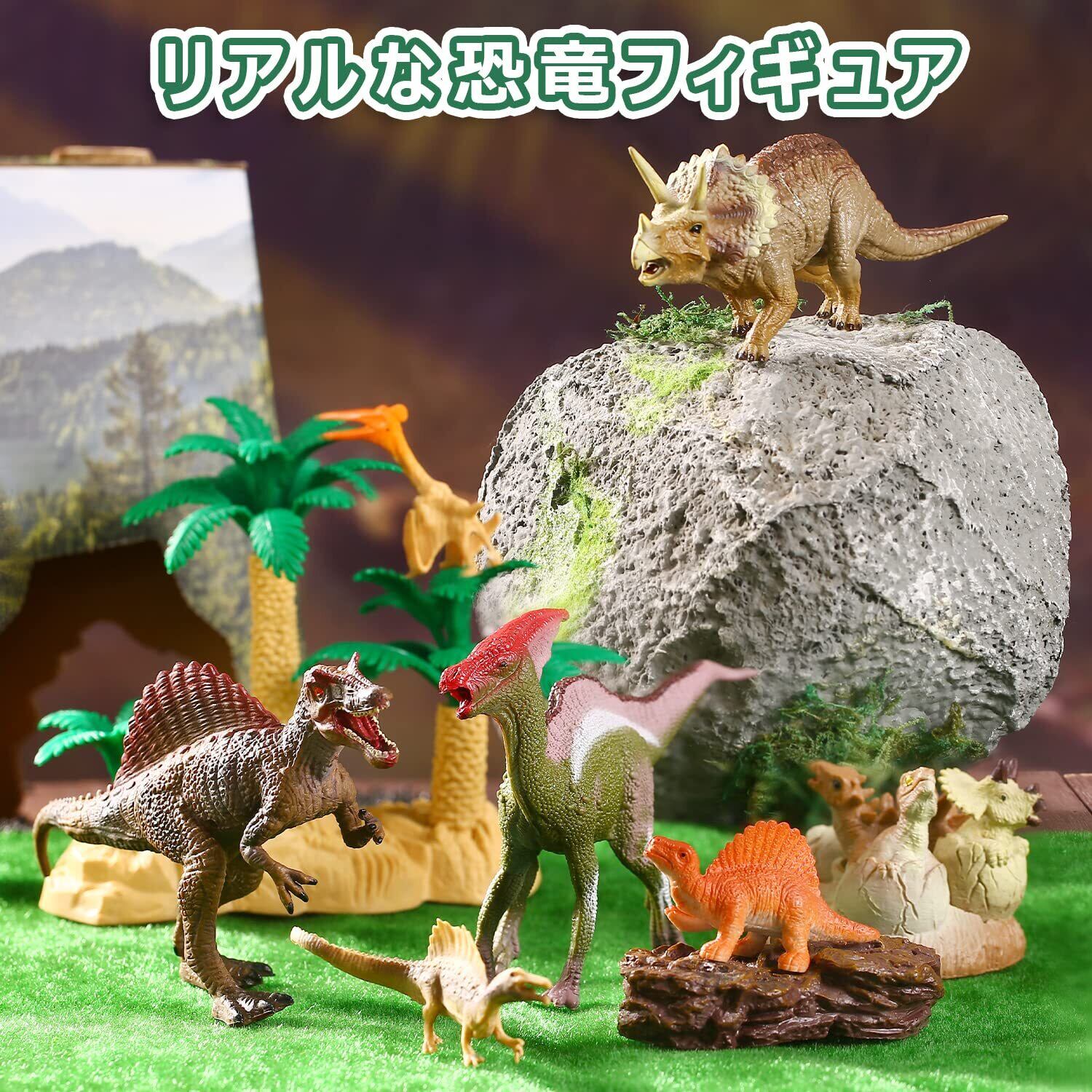 【恐竜好きのお子様へのプレゼントに最適!】当製品は恐竜好きのお子様にとって、最高のクリスマスプレゼントです。お誕生日の贈り物、入学祝い等にもぴったり! 恐竜だけでなく木や卵などの小物、恐竜柄のプレイマットもセットで付いてくるのであれこれ追加で買わなくても大丈夫です。ごっこあそびを通じて、子供の豊かな想像力を育てます。