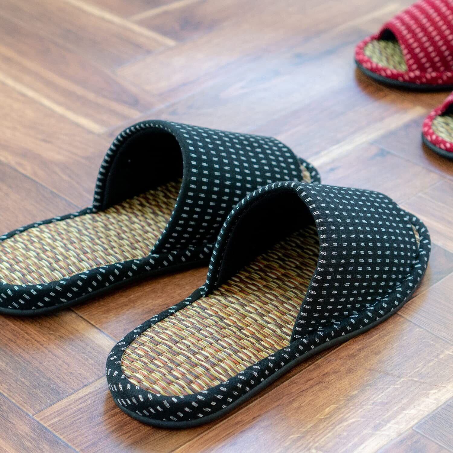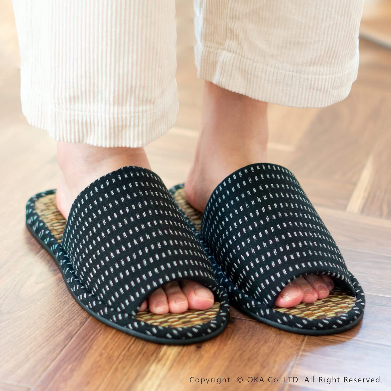 オカ(OKA) 日本製久留米織畳スリッパ Lサイズ ブラック (ルームシューズ)