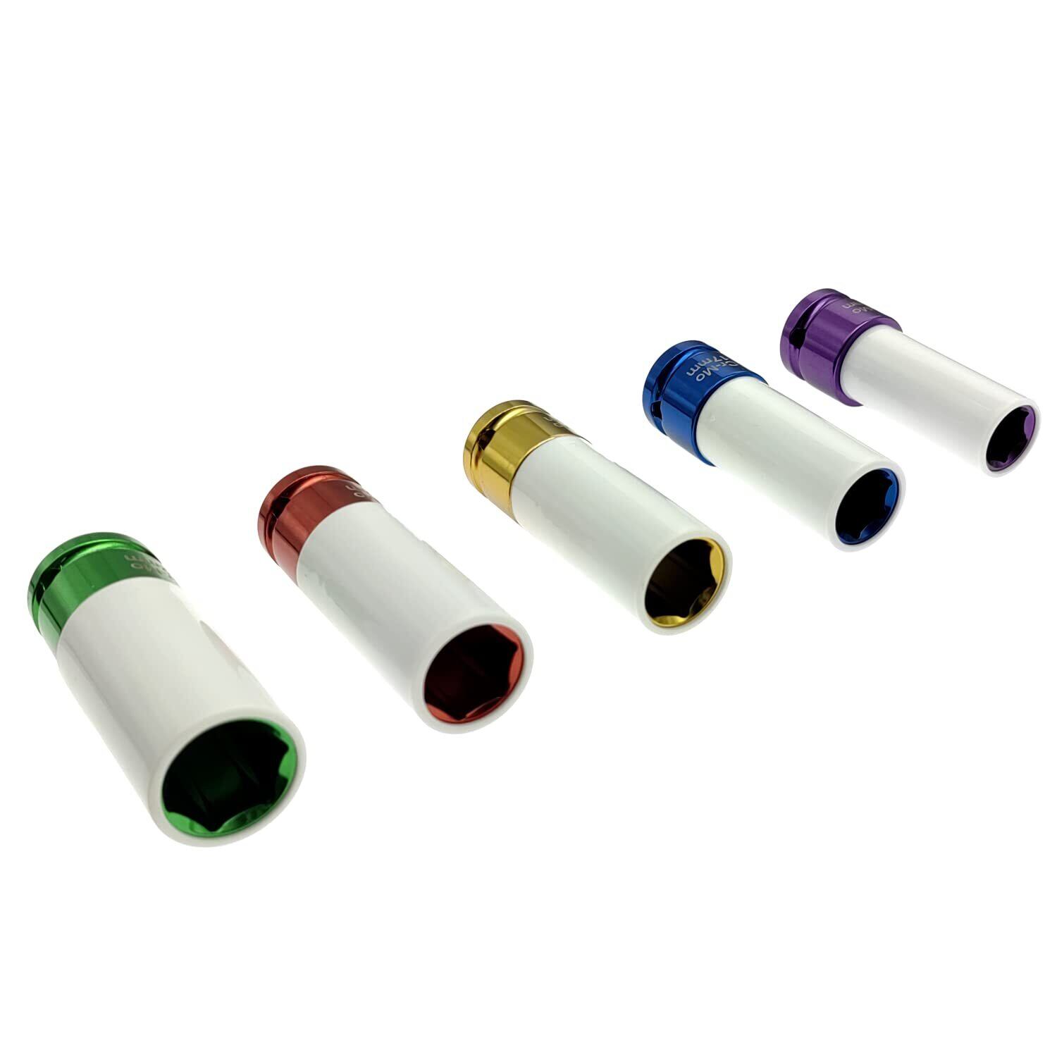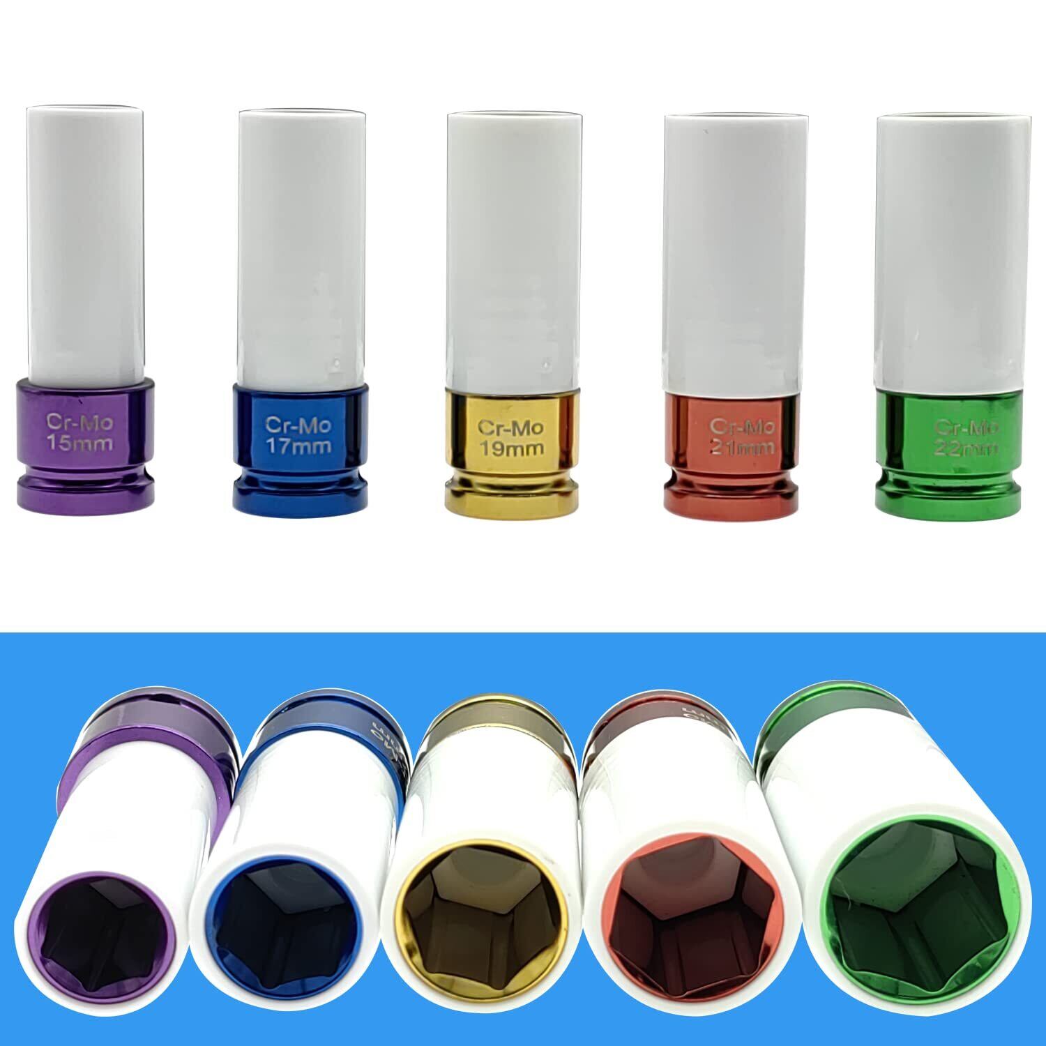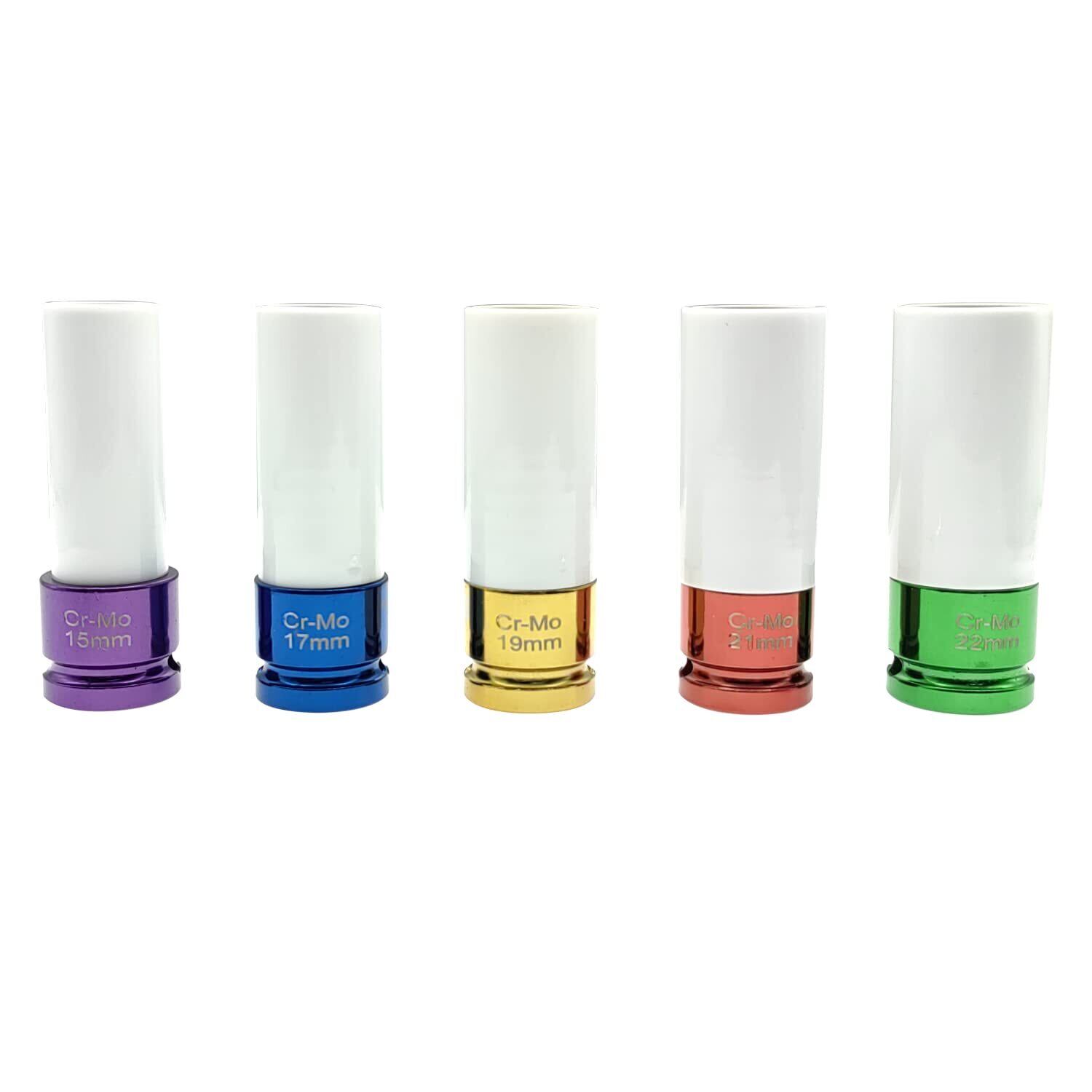 ZKTOOL 5ピース インパクトレンチソケットセット アルミホイールナットソケット 15mm 17mm 19mm 21mm 22mm 薄口 差込角 1/2インチ