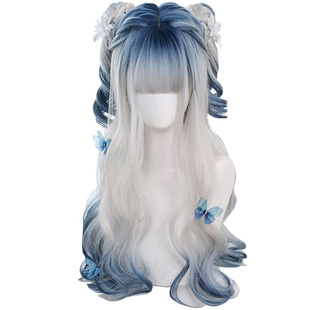 ロリータ ウィッグ 原宿風 GAL系 ゴスロリ コスプレ カツラ 白 水色 メッシュ ゴシック ロング 森ガール ゆめかわいい お姫 小顔 パーティー ハロウィン 仮装 日常 かつら wig