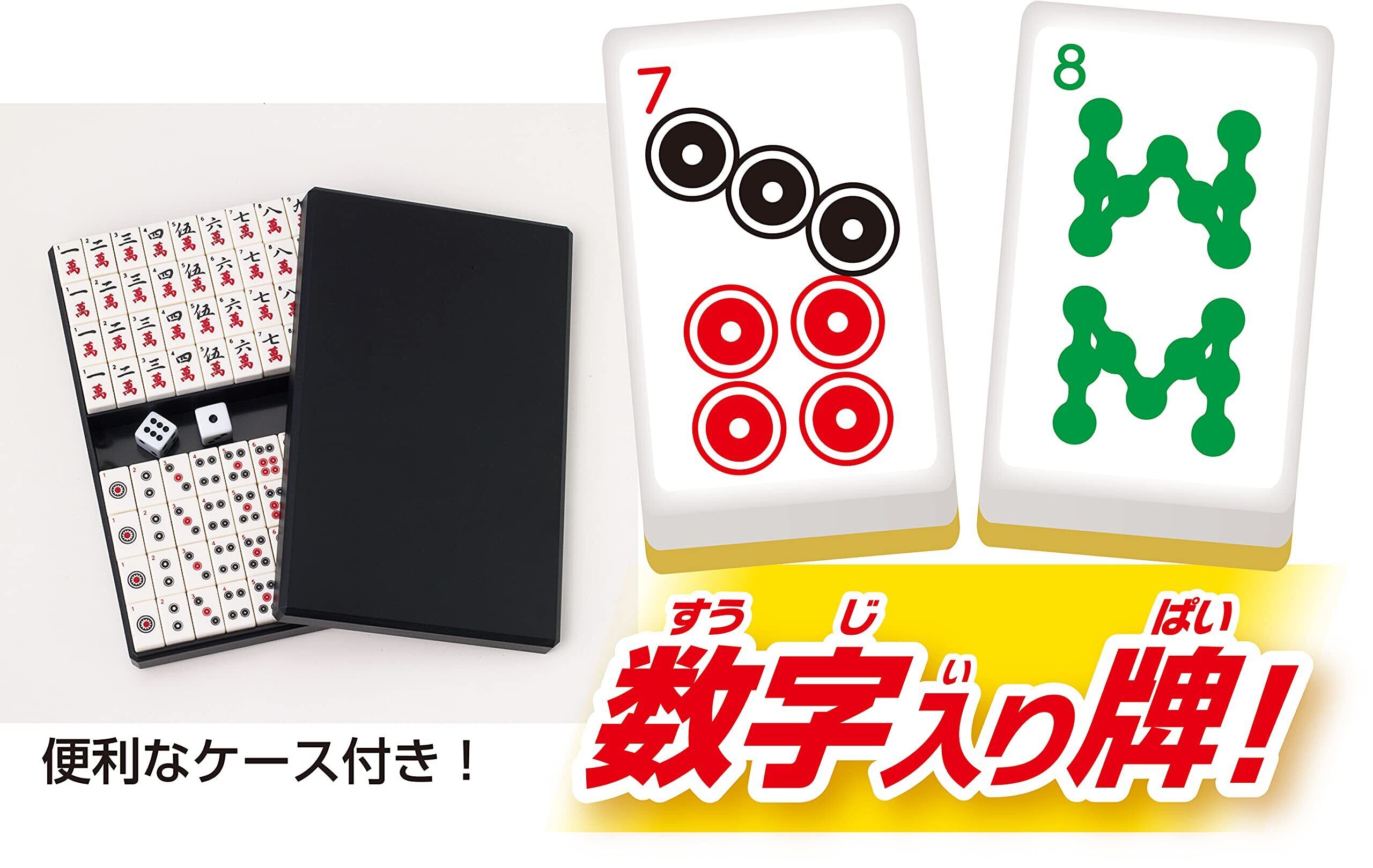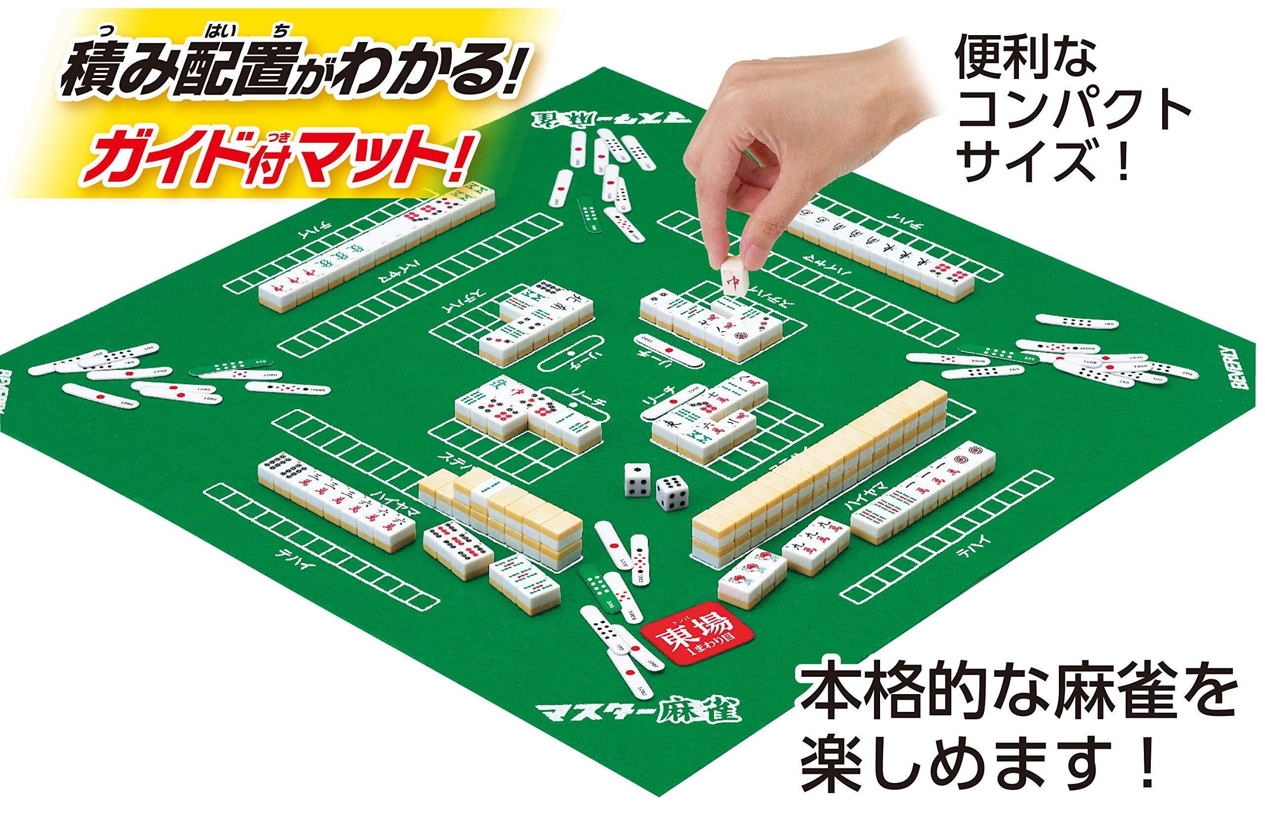 はじめてでもすぐに遊べる、マスター麻雀。数字入り牌、数字入り点棒、ガイド付きマット、上がり役表、点数計算早見表など、初心者にもわかりやすい機能満載で、遊びながらルールが覚えられる。簡単スタートブック付き。