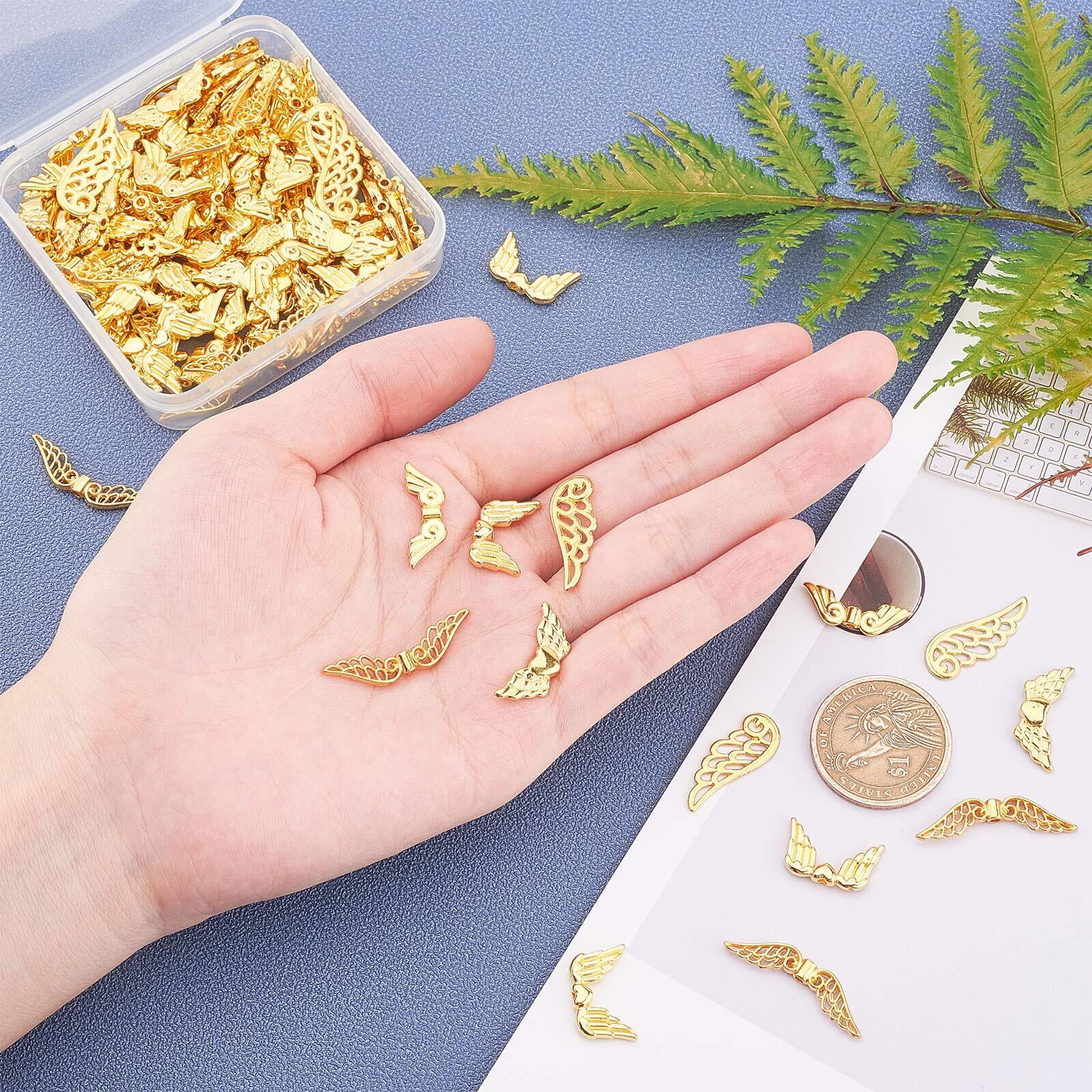 [PH PandaHall] 天使の羽 160個 8種 スペーサービーズ 翼柄 金古美 チャーム 金具 ジュエリー用 エンジェルウイング アクセサリーパーツ 手作り素材 材料 チベット風 合金 翼 イヤリングブレスレットペンダントネックレスジュエリーDIYクラフト作り ゴールド