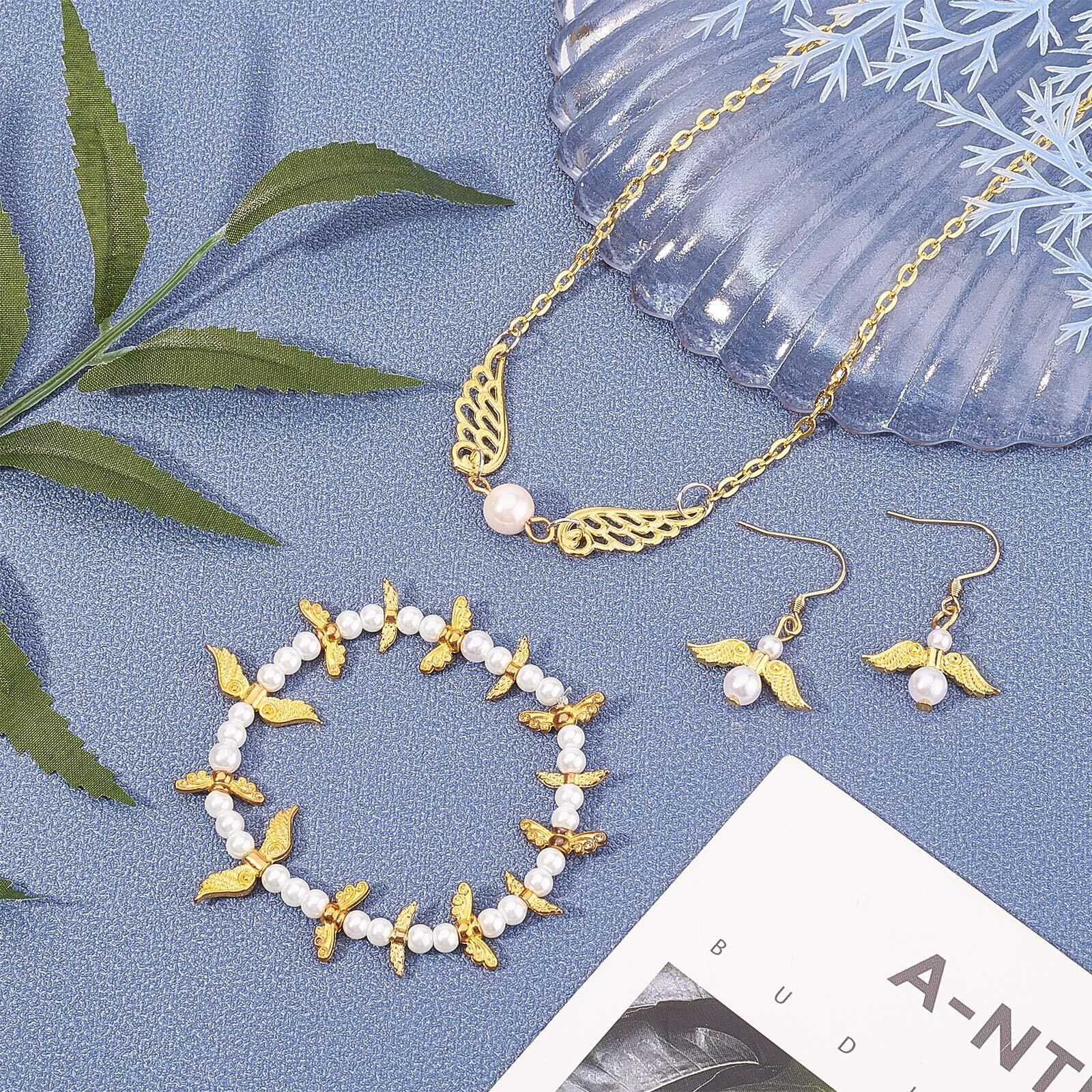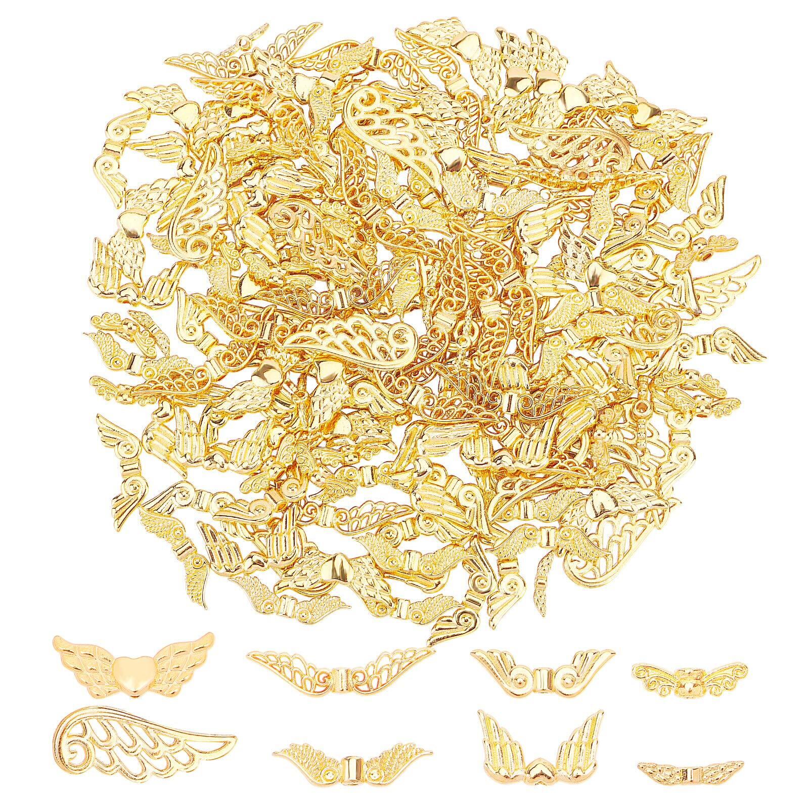 選べる8種のビーズ: パッケージには、8種類の160個の天使の羽の形の金属スペーサービーズが含まれています。各スタイルは20個で、DIYクラフトプロジェクトのさまざまなニーズを満たすことができます。