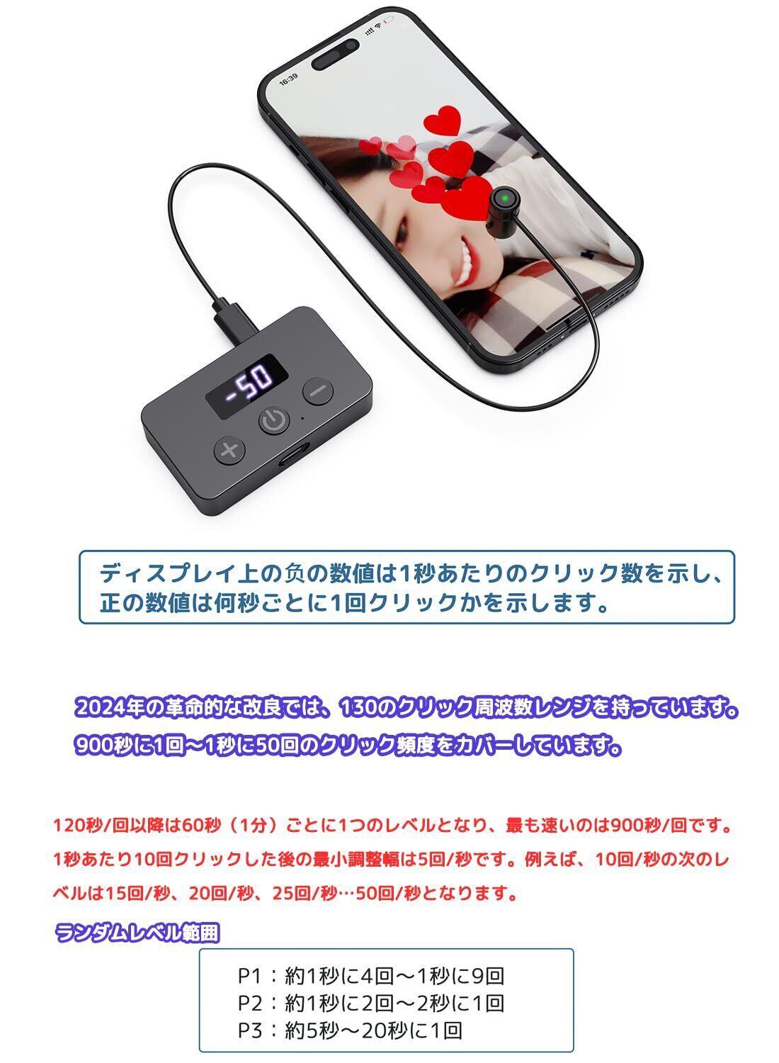 【130のクリック周波数レンジ】2024年の革命的な改良では、130のクリック周波数レンジを持っています。この周波数レンジは市販の同類品より2~3倍にアップし、900秒に1回~1秒に50回のクリック頻度をカバーしています。