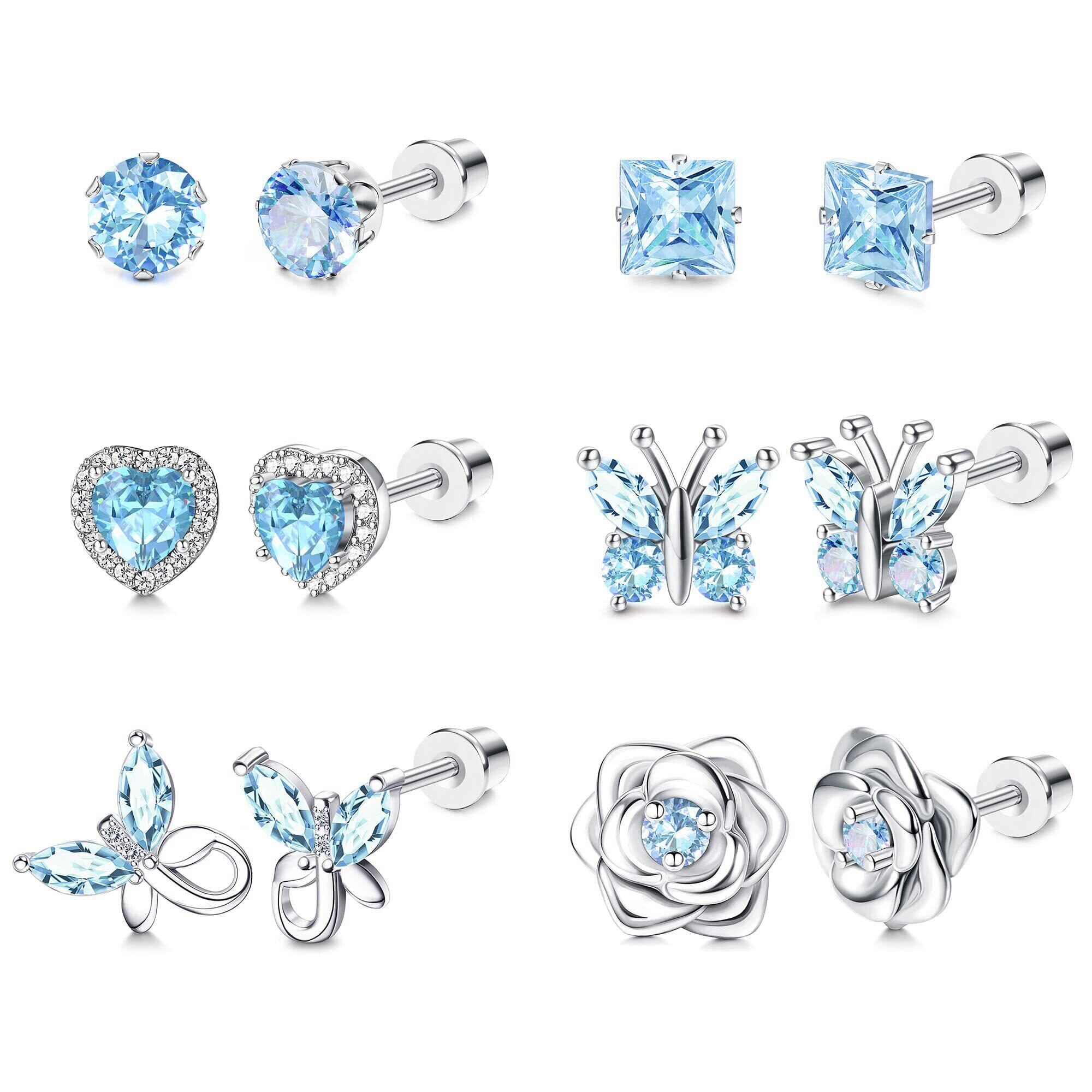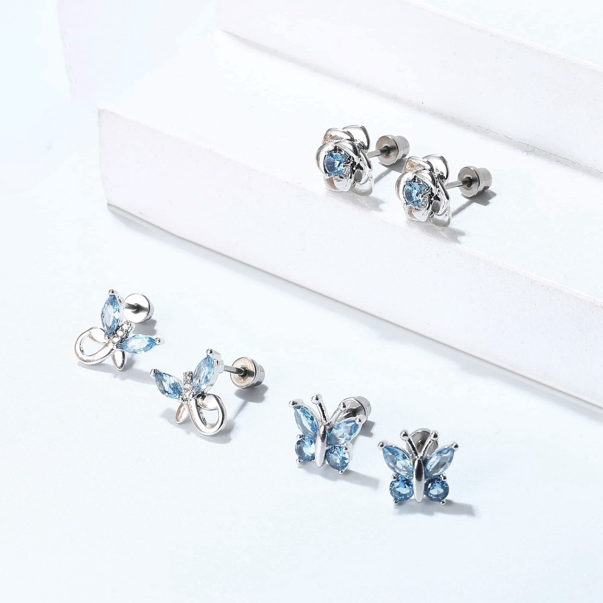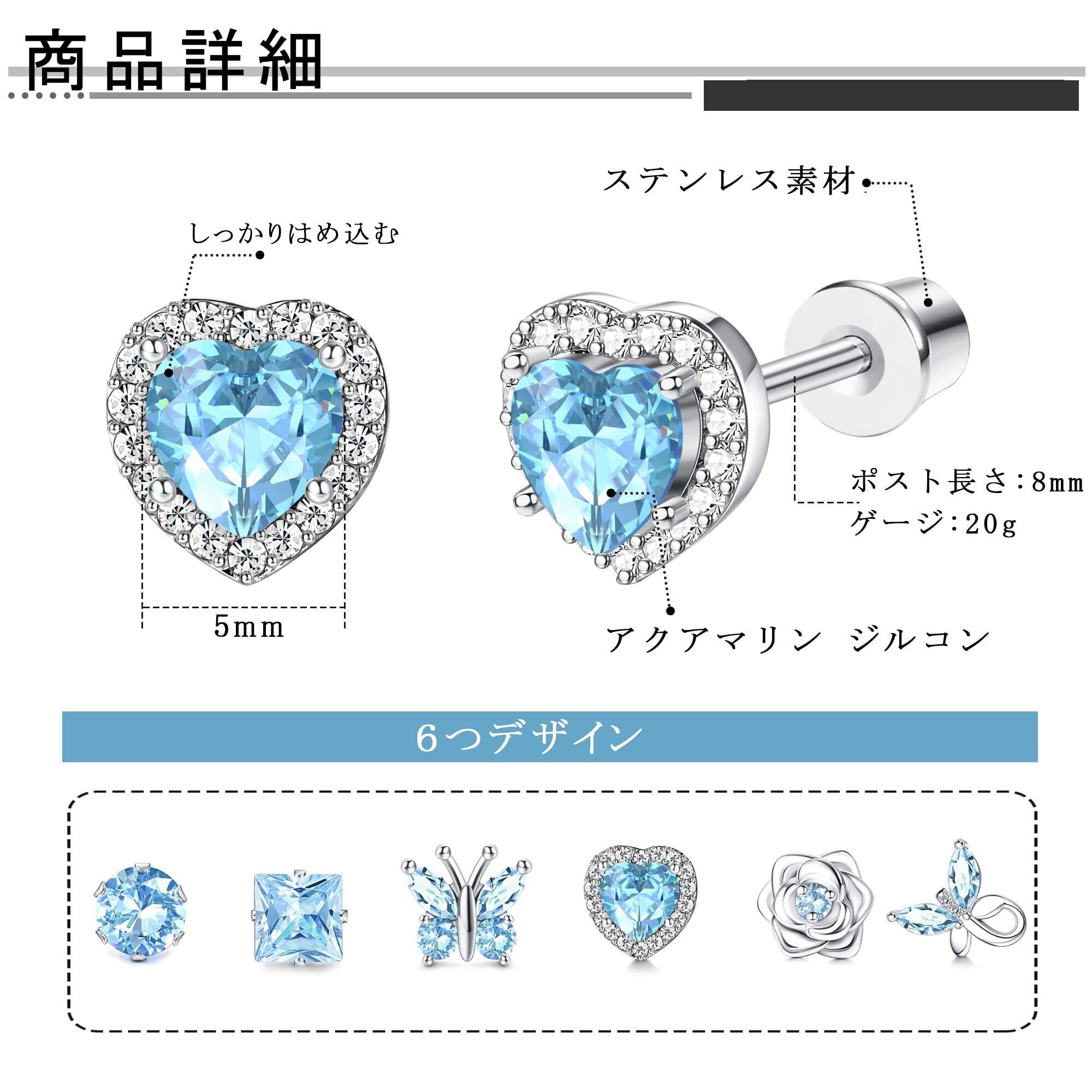 人気アイテムかわいいピアスは蝶、一粒、花、ハートのモチーフを使っております。ストーンのジルコニアはアクアマリンの色であり、鮮やかでキラキラと輝いています。美しい色合いがコーディネートのアクセントになります。