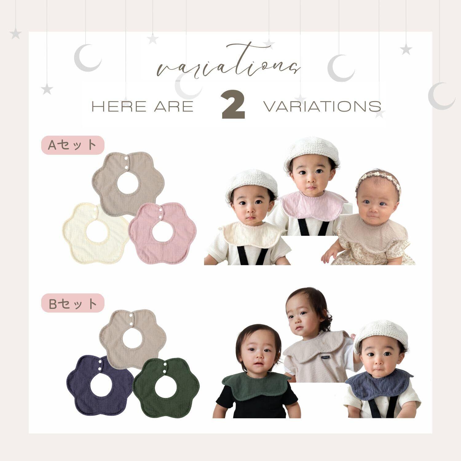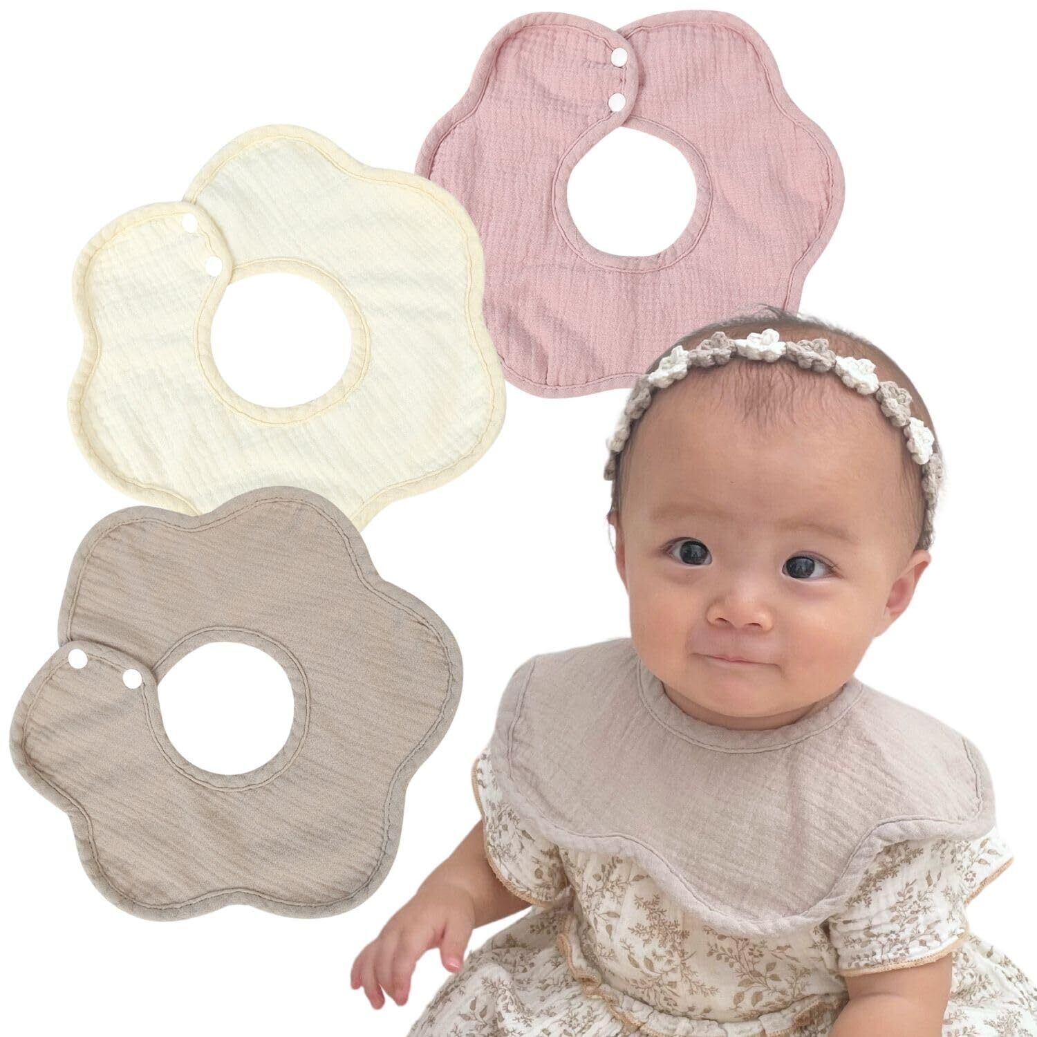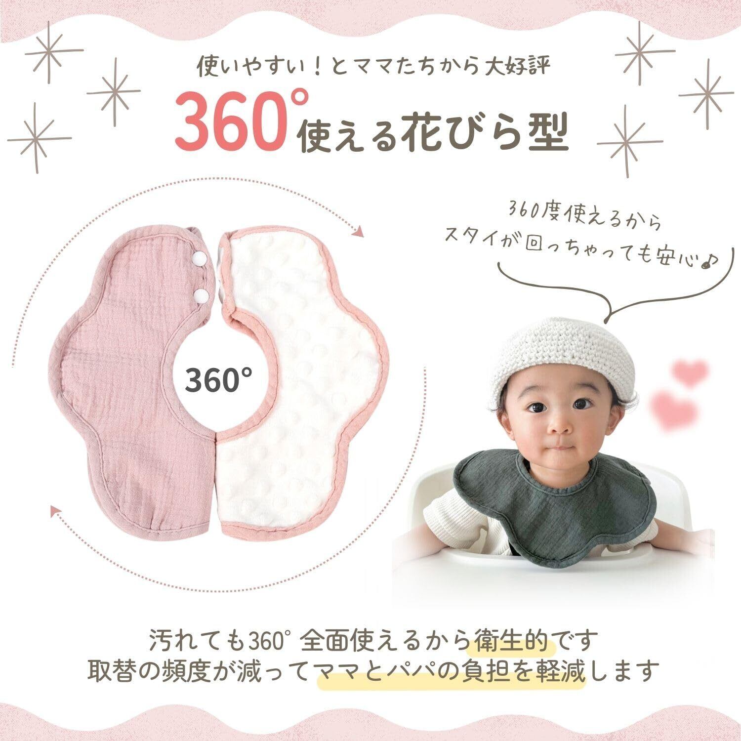 [Ella.] 360° 防水スタイ よだれかけシンプル おしゃれ 4枚セット ベビー 赤ちゃん コットン 綿 防水シート 花形 くるくる 染みない スナップボタンスタイ かわいい 綿100% ベビービブ 男の子 女の子 360 セット