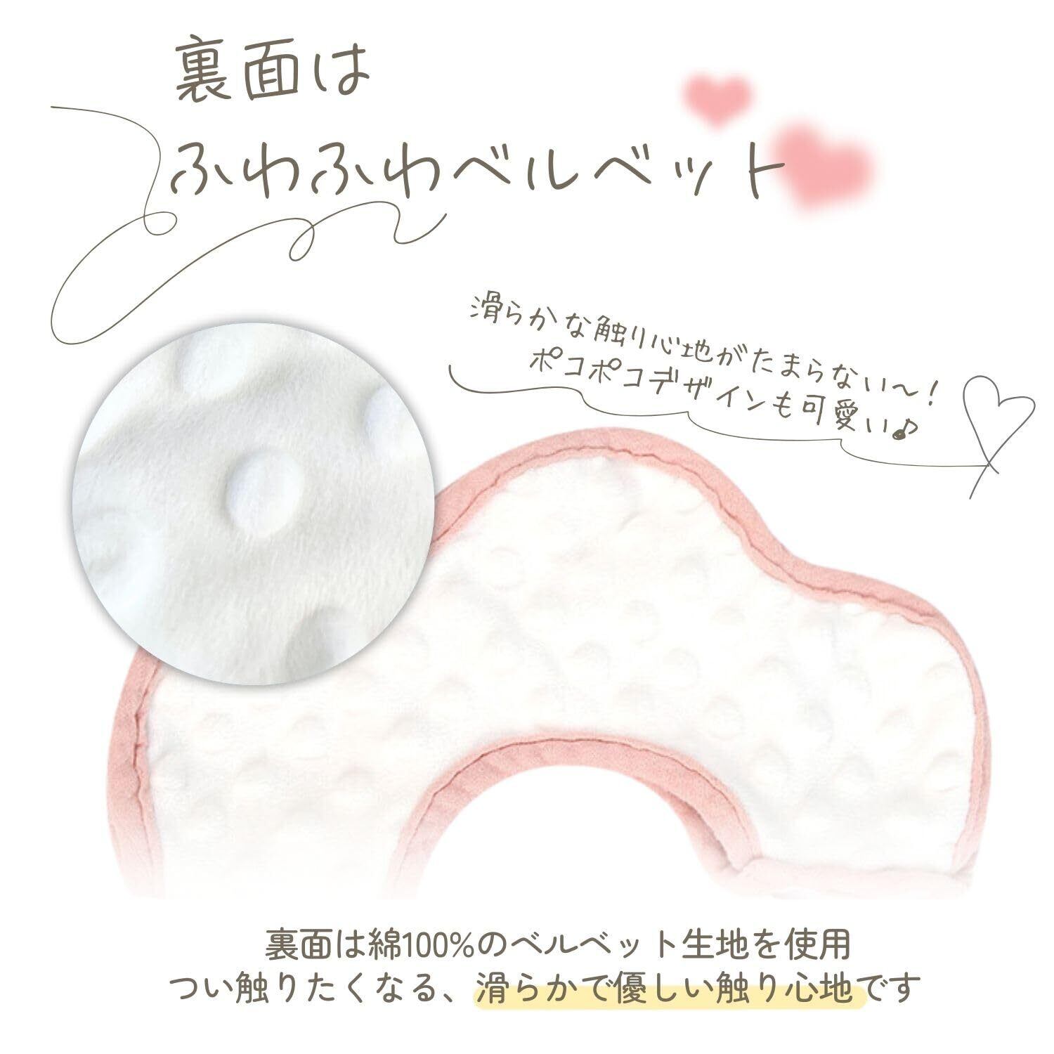コットン&防水シートの4層構造・・・肌に触れる表面は赤ちゃんに安心なコットン100%、吸水性に優れたダブルガーゼを使用。内側には高分子超防水シートを使用しているので、沢山のよだれもキャッチ。お洋服が汚れてしまう心配がありません。裏は凸凹感のある特殊素材で、ふんわりとした感触が繊細な赤ちゃんの肌にも安心です。表面生地はすべてコットンを使用、両面ご使用いただけます。