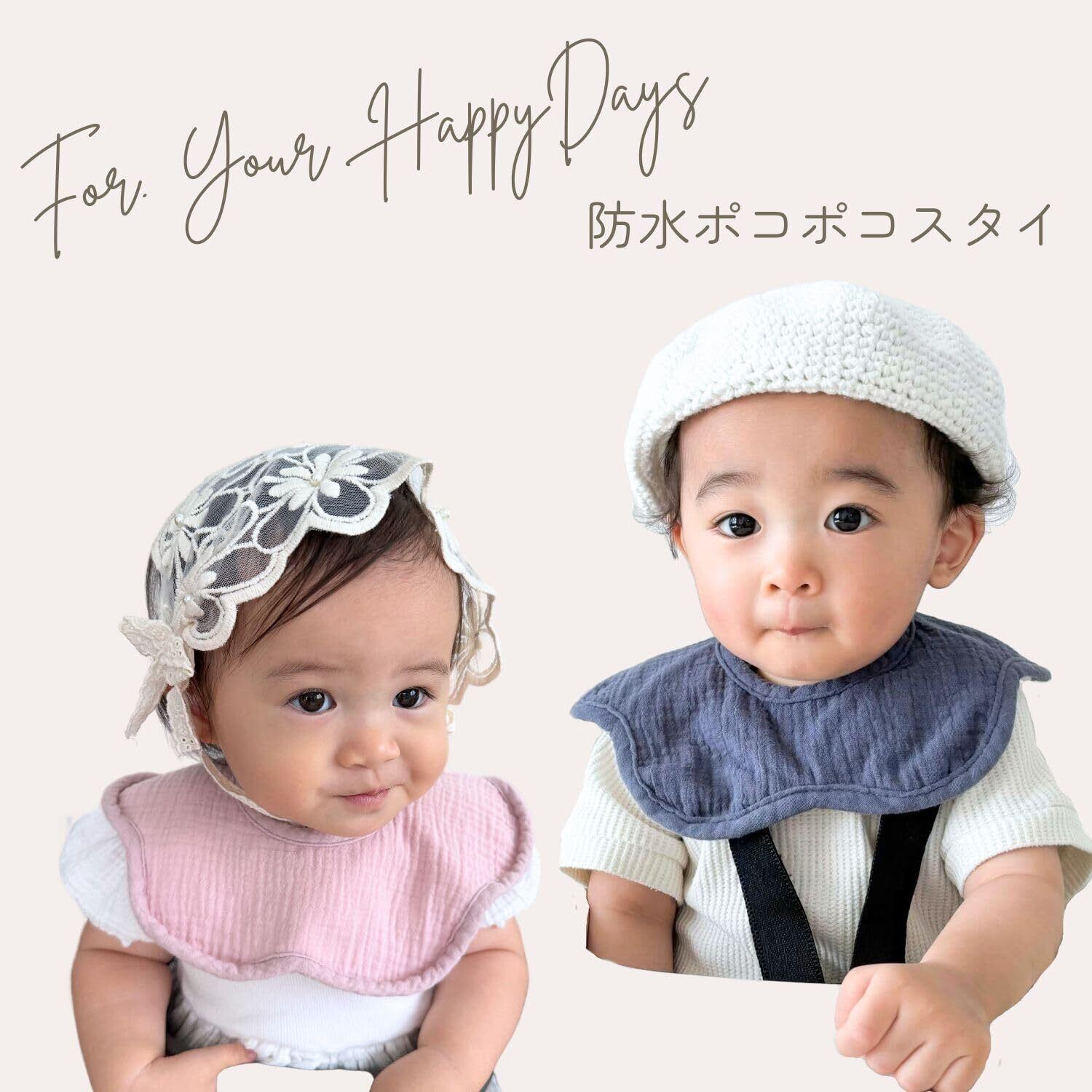可愛くて使いやすい360度スタイ・・・スタイは人気の360度タイプ。回して使えるため吸収範囲が広く、スタイを取り替える回数が減るのが嬉しいポイント口拭き部が後ろに回っていつの間にかマントスタイルに・・・なんてことはありません。どんな時でも可愛らしさをキープ